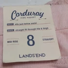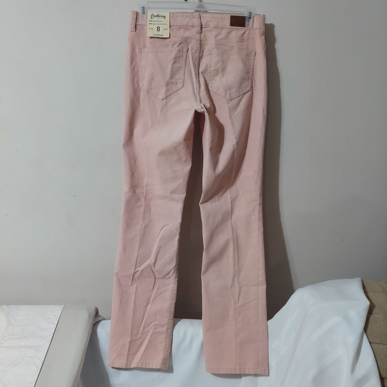 The Lands' End Women's Mid Rise Straight Corduroy Pants in size 8 are a stylish and versatile addition to any woman's wardrobe. Made from a comfortable cotton blend fabric in a washed pink color, these pants feature a flat front design, mid-rise waist, and a straight leg style for a flattering fit. The five-pocket style adds functionality, while the zip and button closure ensures a secure fit. Machine washable for easy care, these pants are perfect for the winter, fall, and spring seasons.