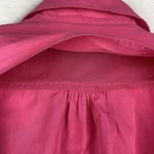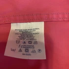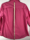 This Lands' End women's pink button-up shirt is perfect for any casual, recreational or travel occasion. It features a collared neckline, long roll-tab sleeves, and a back vent with two front chest patch pockets. The shirt is made of a comfortable polyester cotton blend and is machine washable. The shirt also has shoulder straps. It comes in size Large with a regular fit.