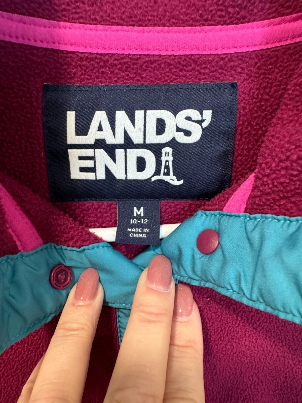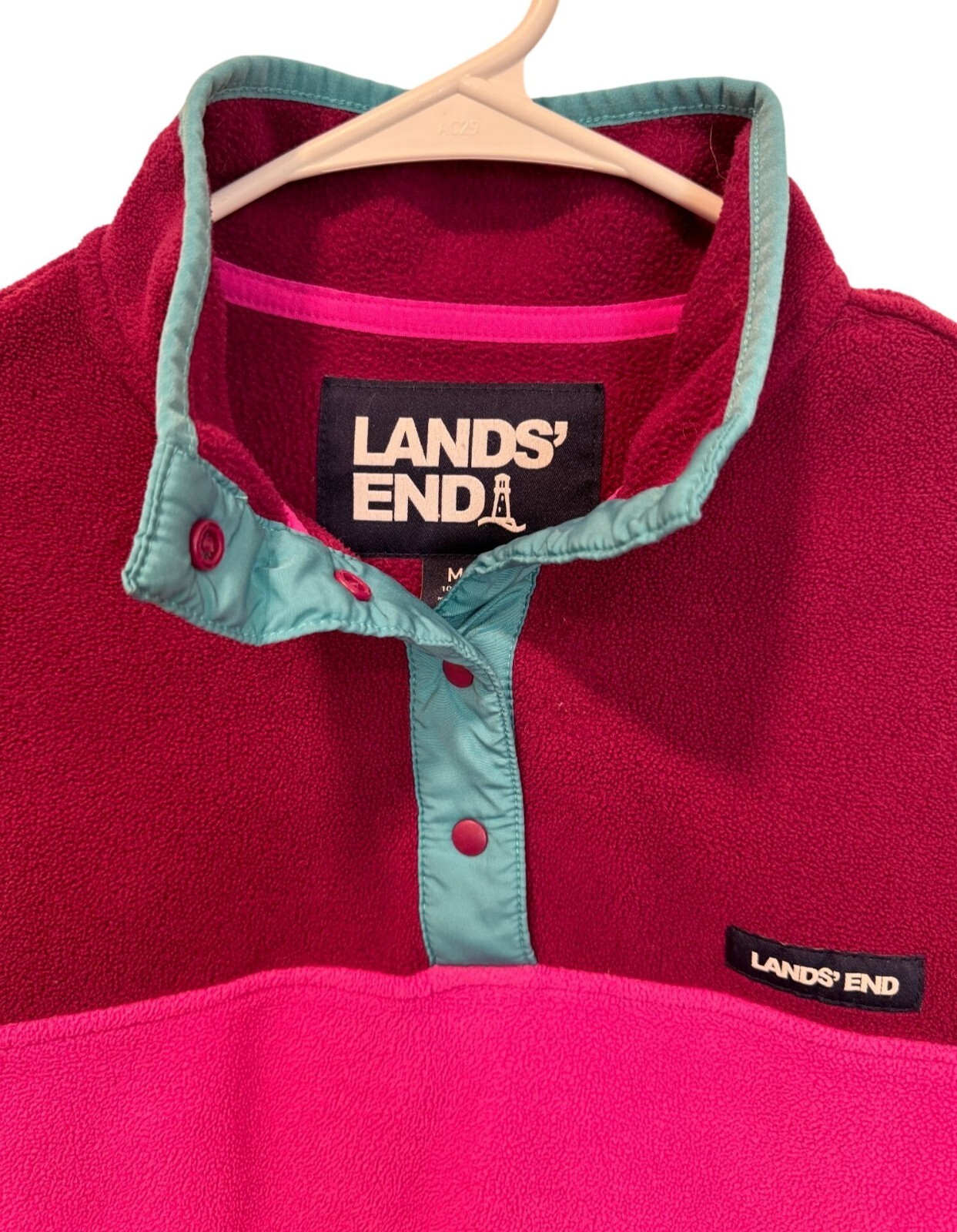 Lands' End Women's 1/4 Button Up Fleece Shirt Purple Teal Size 10-12 Medium Condition: Pre-Owned Good
