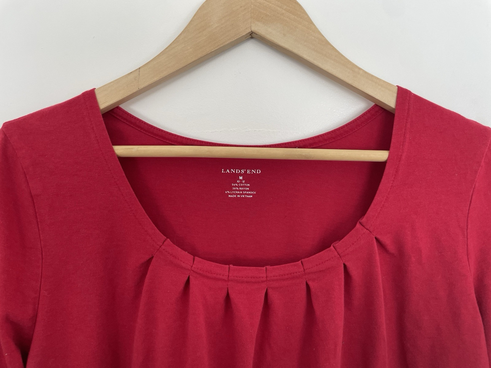 Lands' End Women's Solid Red Pleated Neckline Cotton Blend Long Sleeve Shirt M. Condition is pre-owned. Smoke free, pet free home. Shipped via USPS Ground Advantage. In very good condition. Free of rips or stains.
