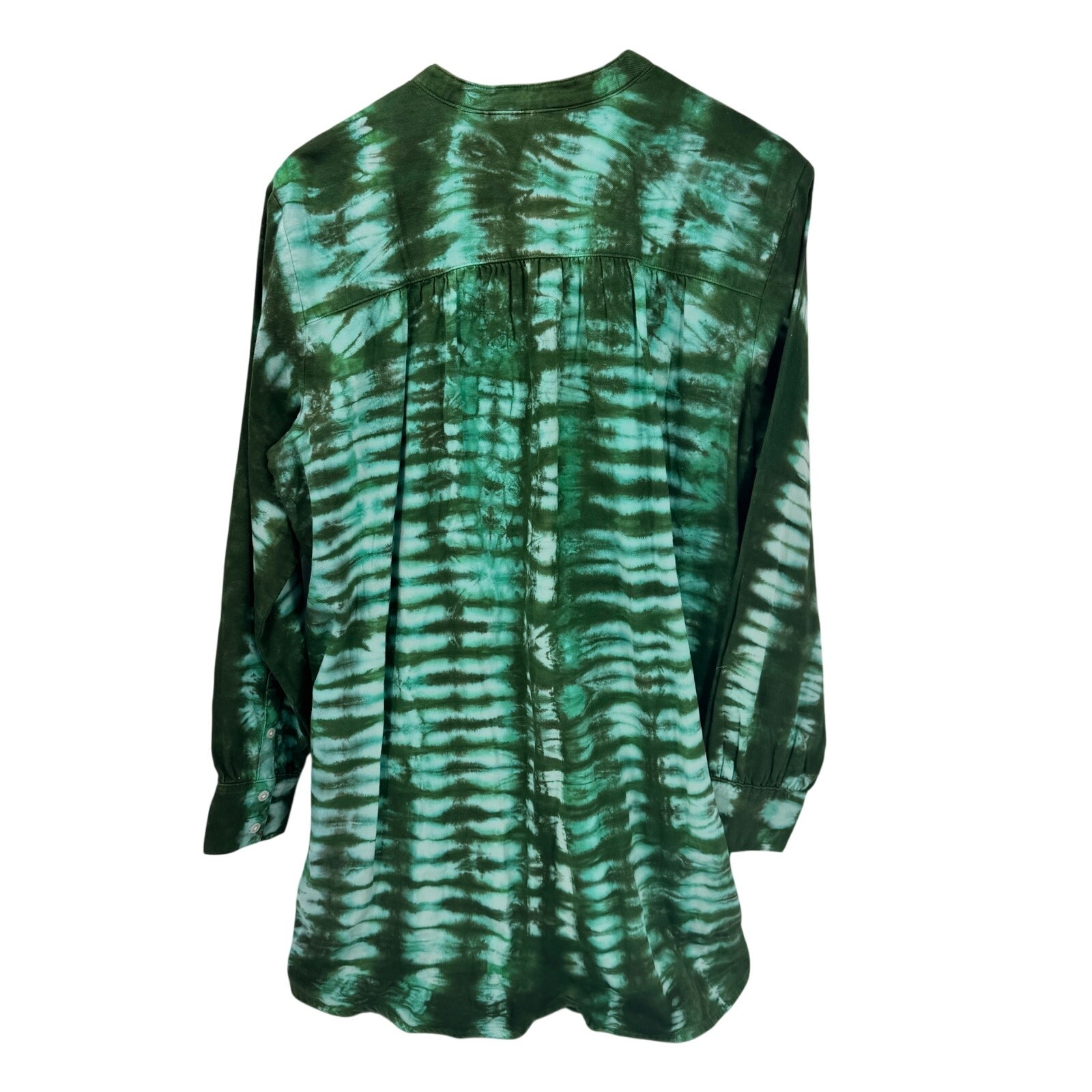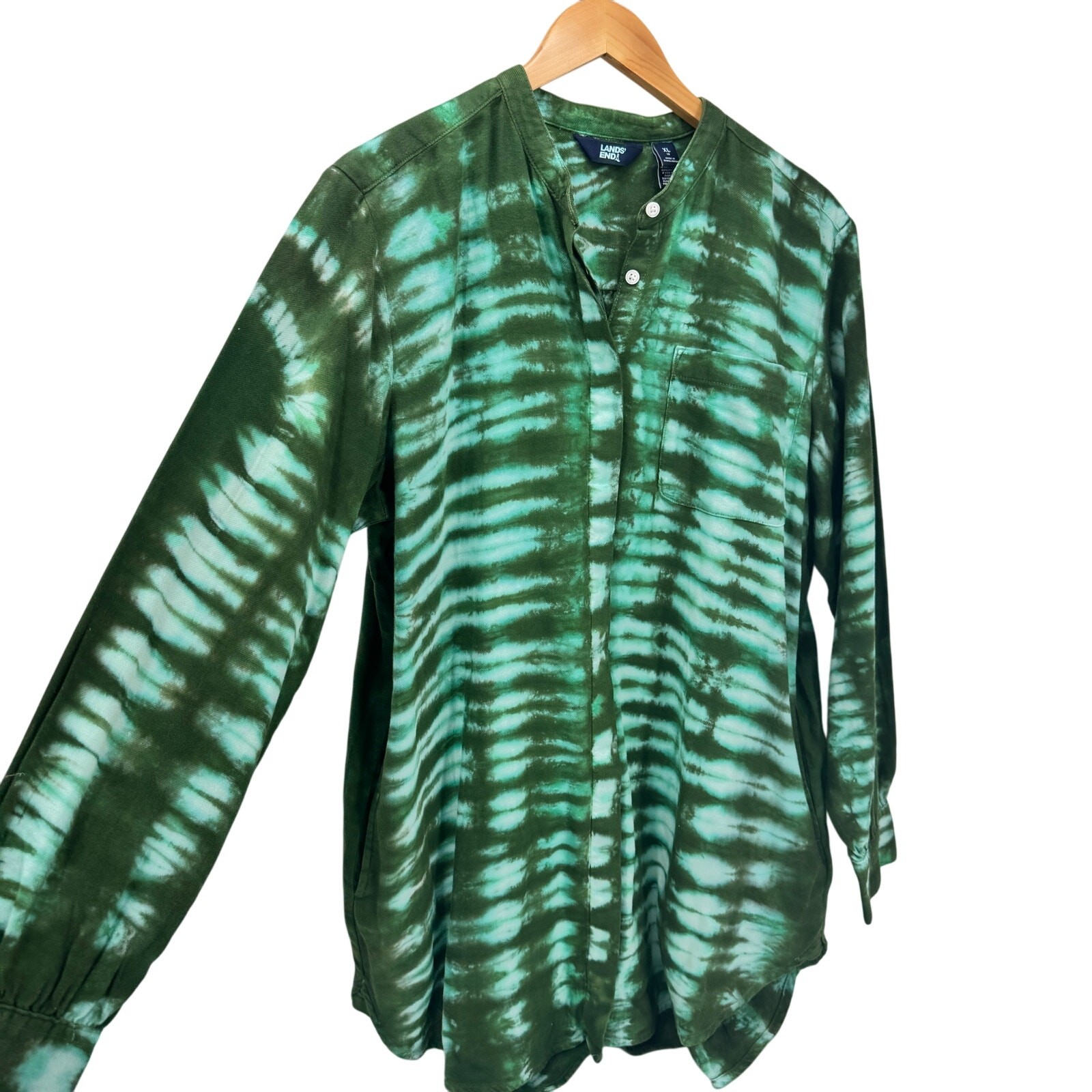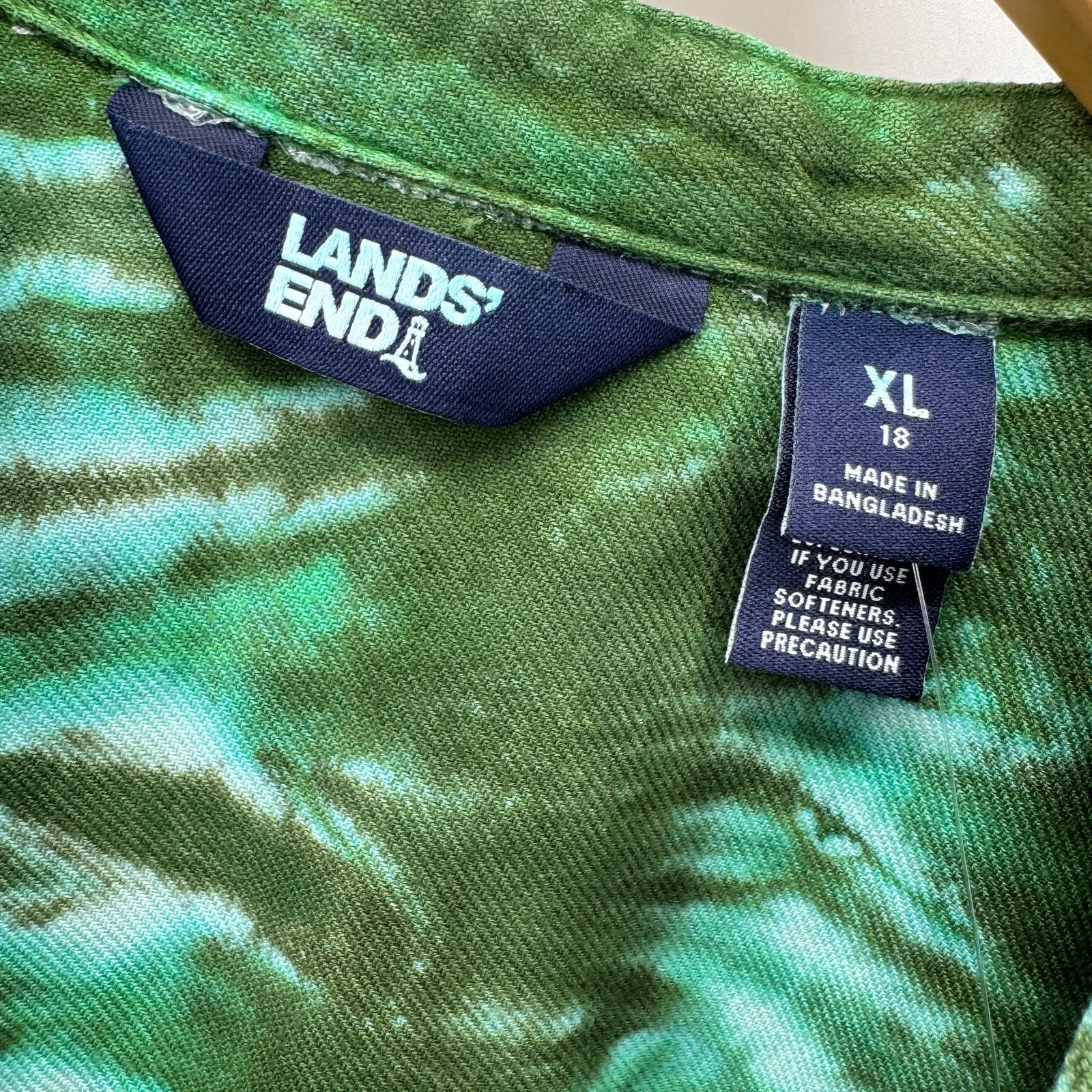 Lands' End Tunic Womens XL Green Cotton Tie Dye Button Up Long Sleeve Cotton Shirt Coastal Very good condition, see all pictures for views. •Pit to pit: 23" •Shoulder to hem: 32" Front 34" Back Thank you for your purchase, we appreciate you!