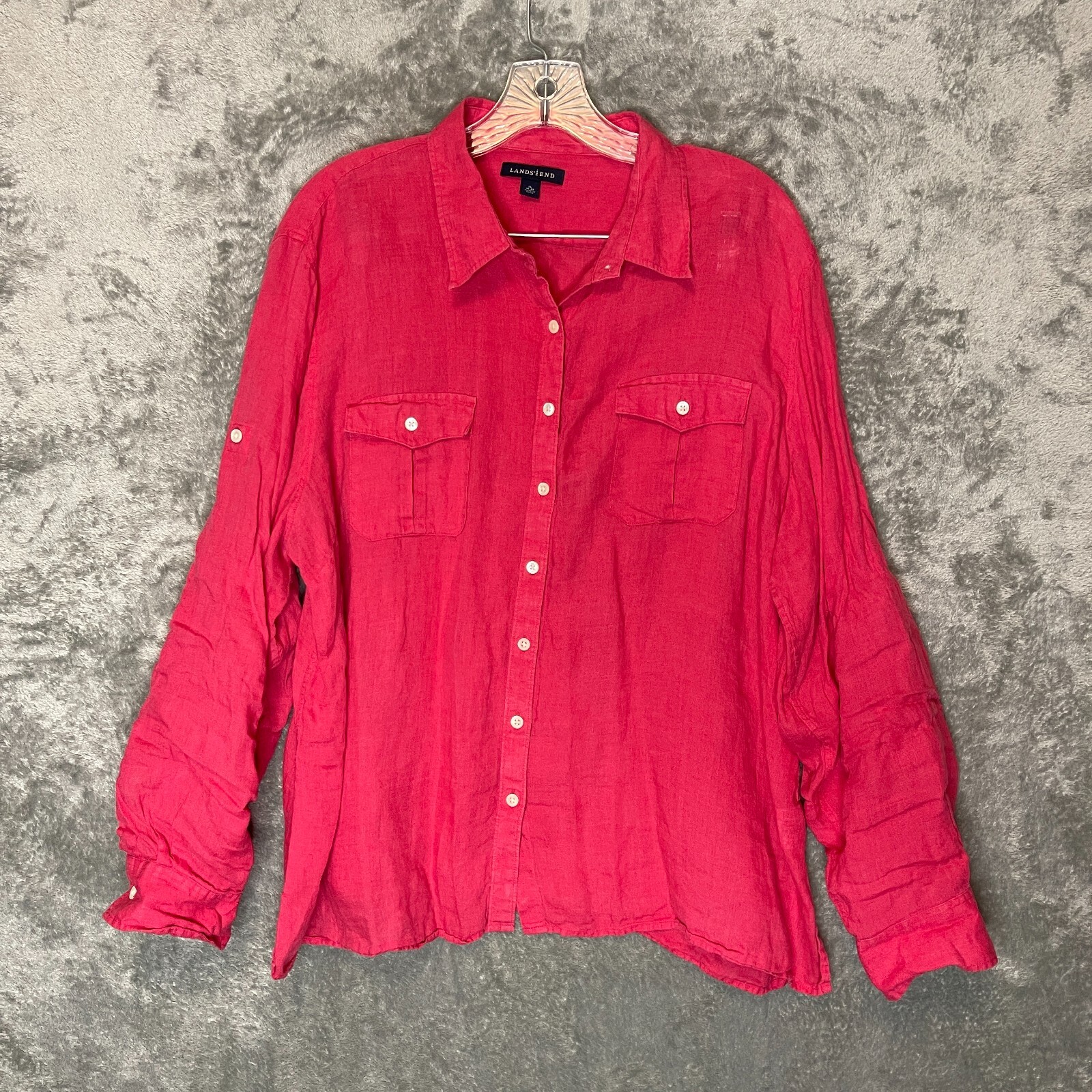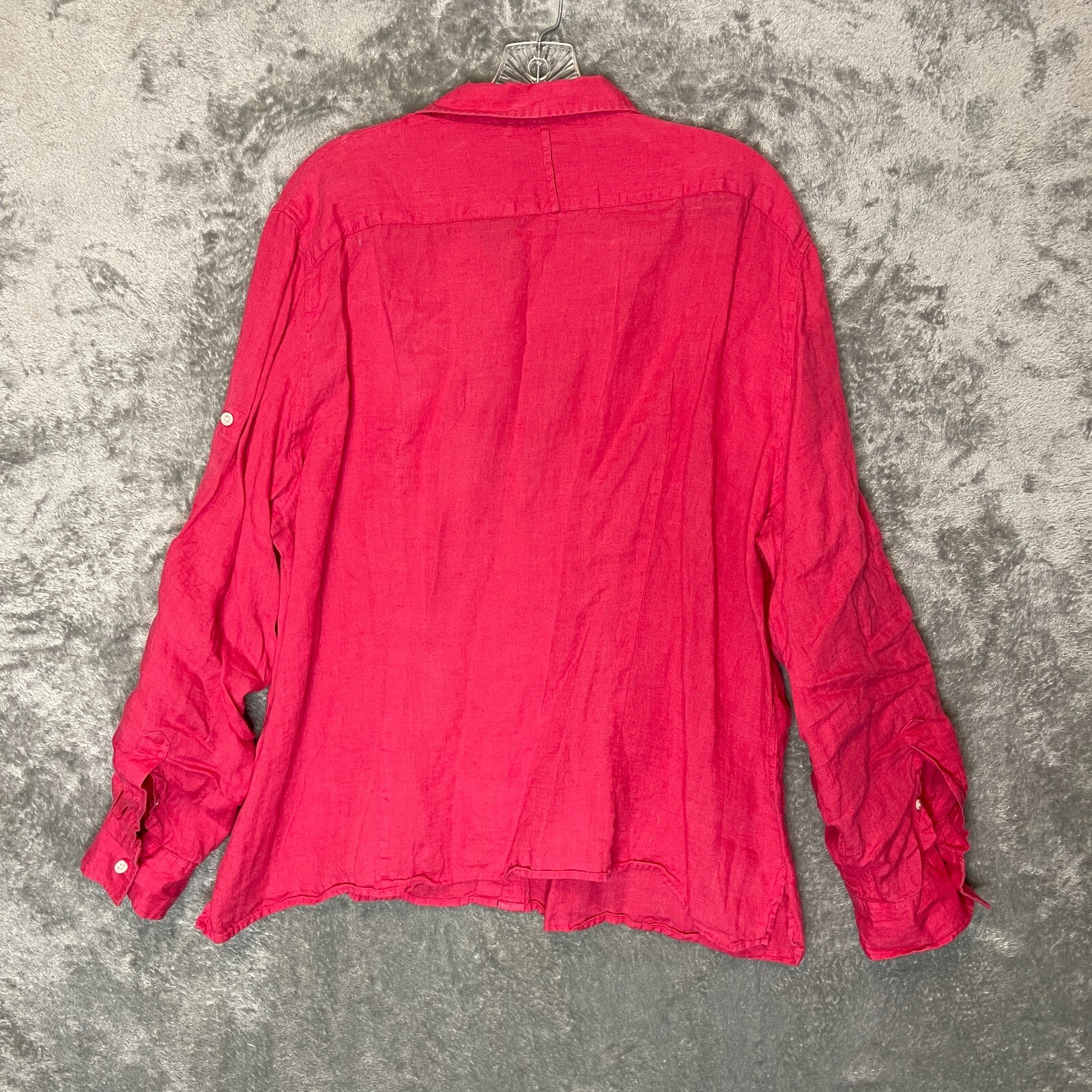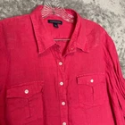 Good Pre Owned condition. It is a dark pink in color. Please see photos for details. SUPER FAST SHIPPING!!! We ship next business day! If you aren't happy with your purchase we offer 30 day FREE returns. No questions asked! Lands End Women 100% Linen Beach Tropical Nautical Resort Roll Tab Button Top XL