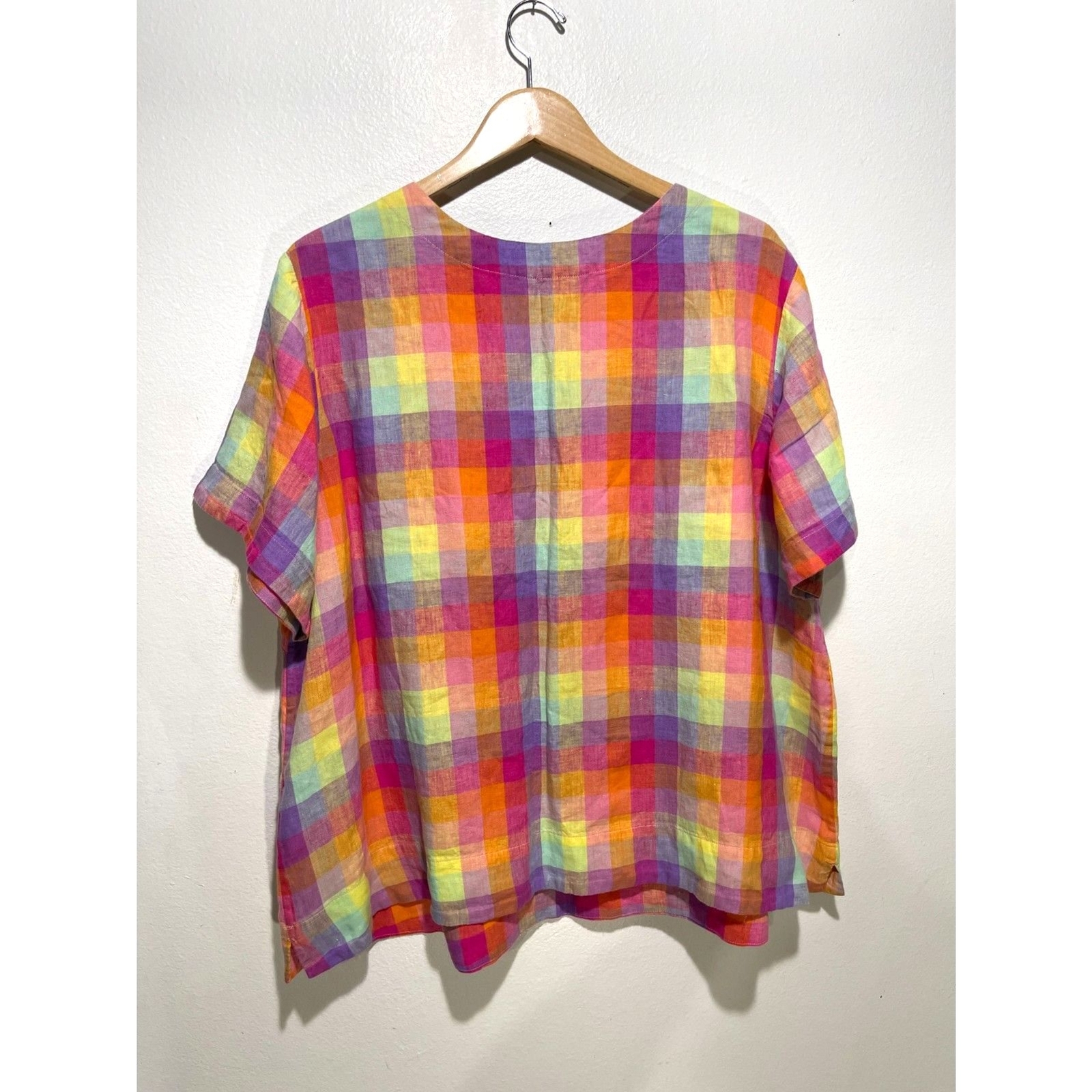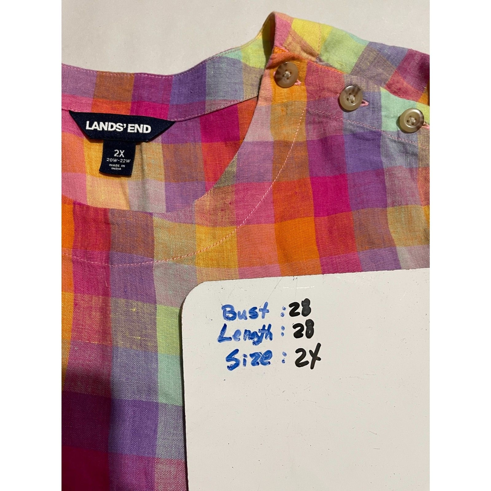 Lands' End linen top colorful plaid summer blouse vacation resort women 2X New