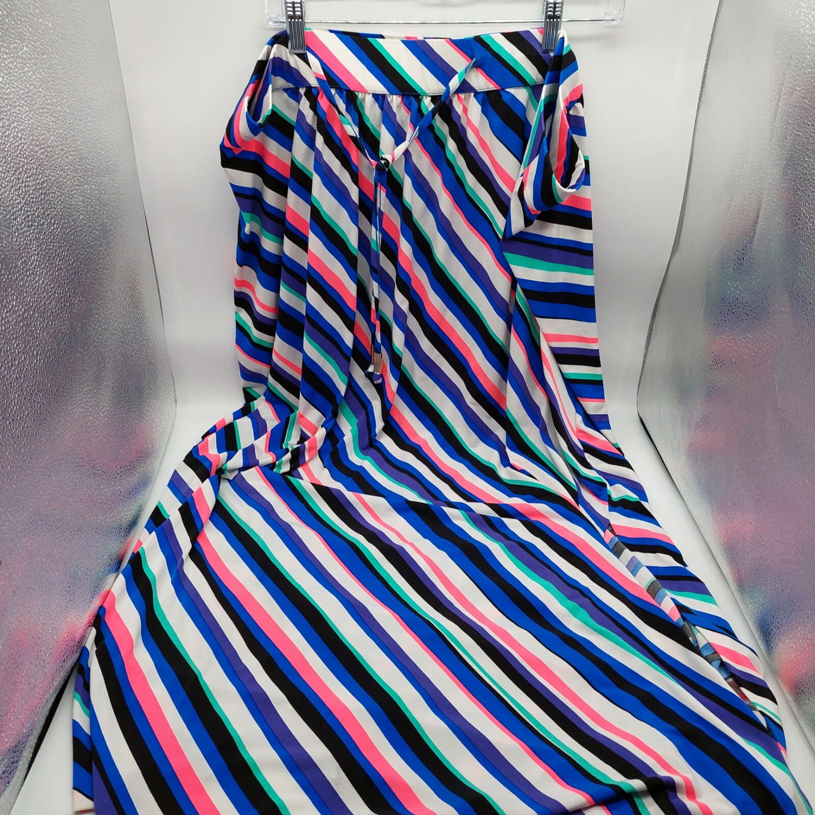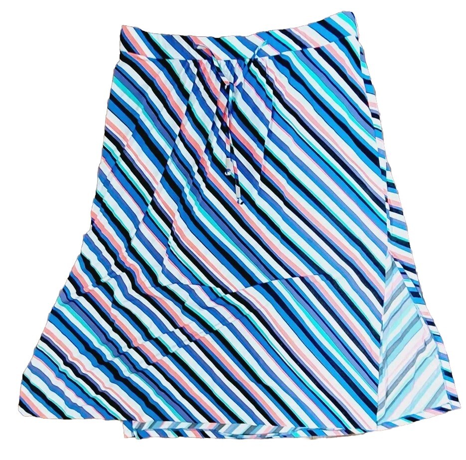 Lane Bryant Multicolor Neon Diagonal Stripes Side Slit Maxi Skirt length 40" Size 26 / 28 pull on