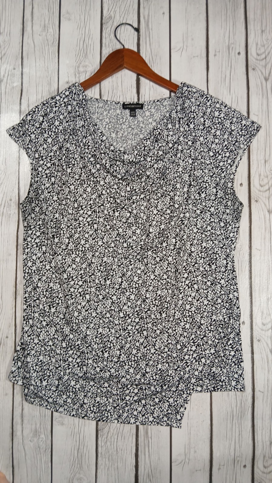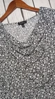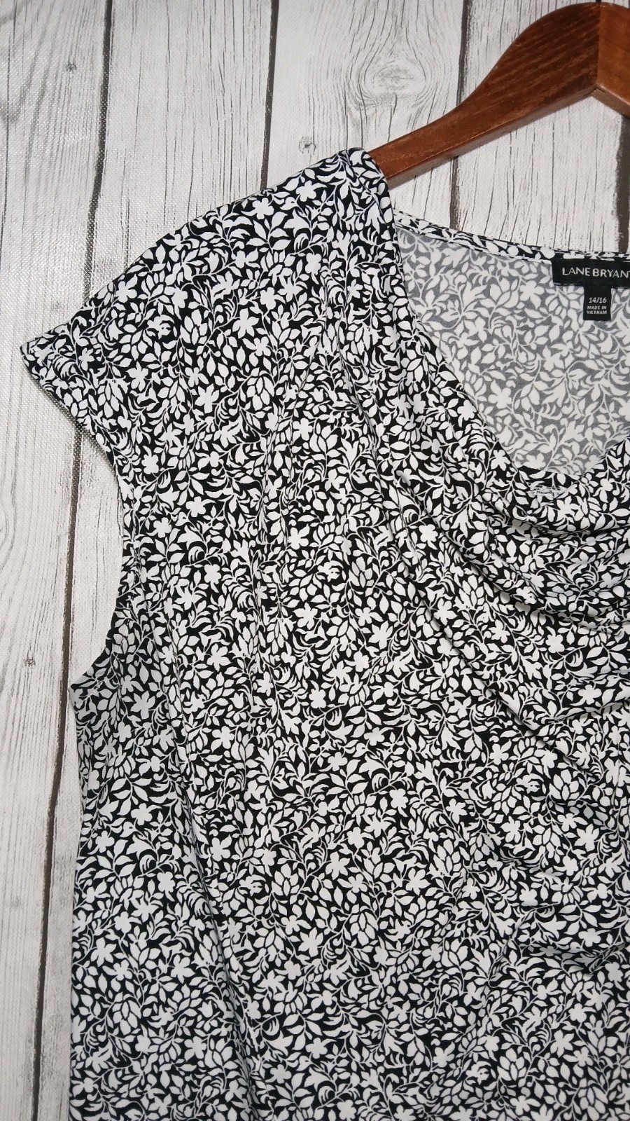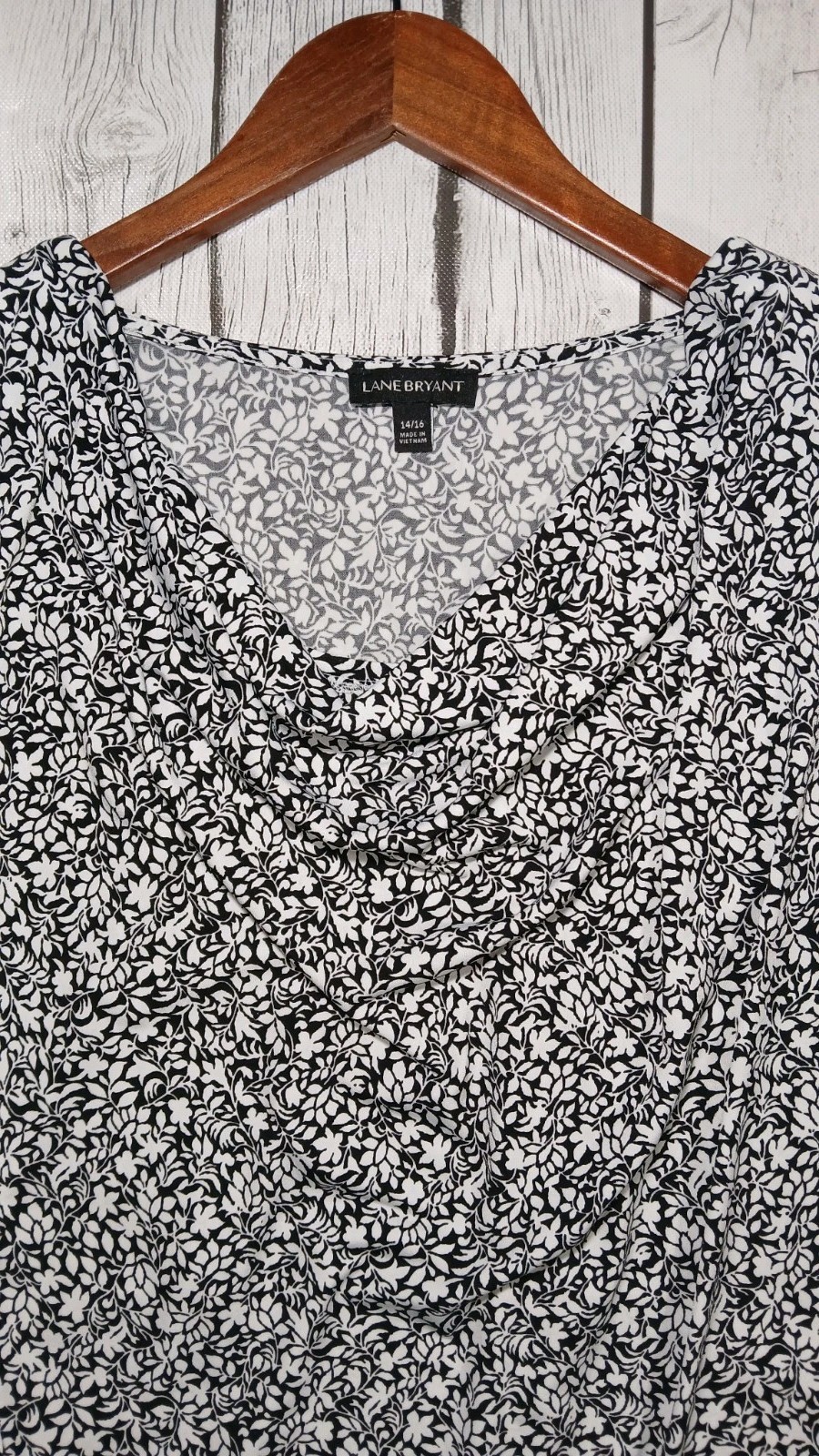 Lane Bryant Black & White Draped Jersey Floral Tunic Top Cowl Neck Lane Bryant Sleeveless Cowl Neck Top Blouse Black White Floral Plus Size 14/16 Brand: Lane Bryant Size: 14/16 (Plus Size) Condition: Excellent Pre-owned Condition (EUC). No holes, stains, or signs of wear. Product Details: Style: Chic sleeveless blouse with a sophisticated cowl neckline. Design: Beautiful black and white abstract floral/botanical print. Features: Flattering draped front and lightweight, breathable fabric. Perfect for office wear or casual outings. Care: Machine washable. From a smoke-free home. Fast shipping! Keywords (Palabras Clave / Tags) Puedes agregarlas en la sección de "Item Specifics" o etiquetas: Style: Cowl Neck, Drape Front, Shell, Blouse. Pattern: Floral, Abstract, Monochrome, Black & White. Occasion: Career, Business Casual, Workwear, Casual. Theme: Classic, Modern, Professional. Fit: Relaxed, Plus Size.