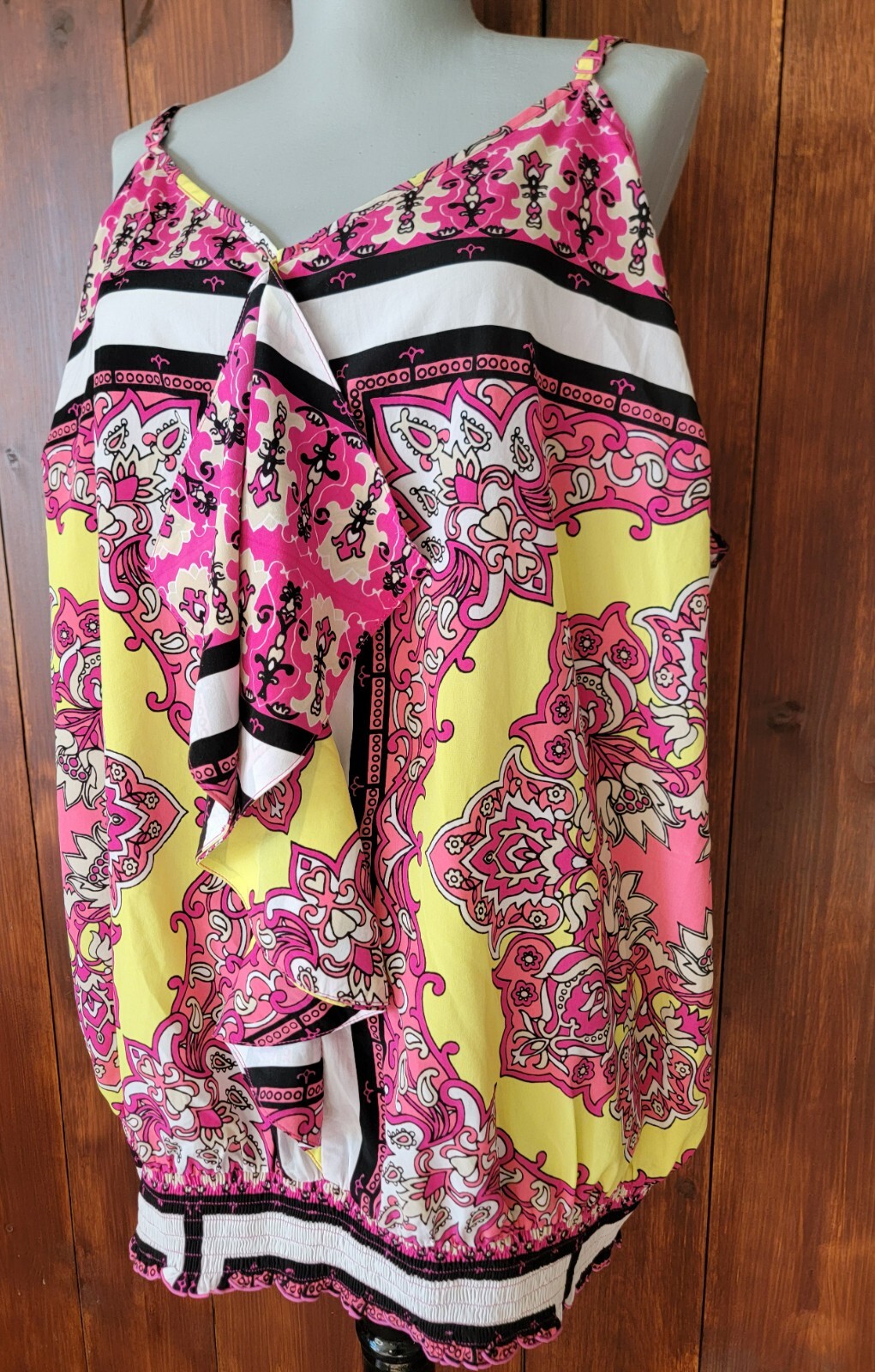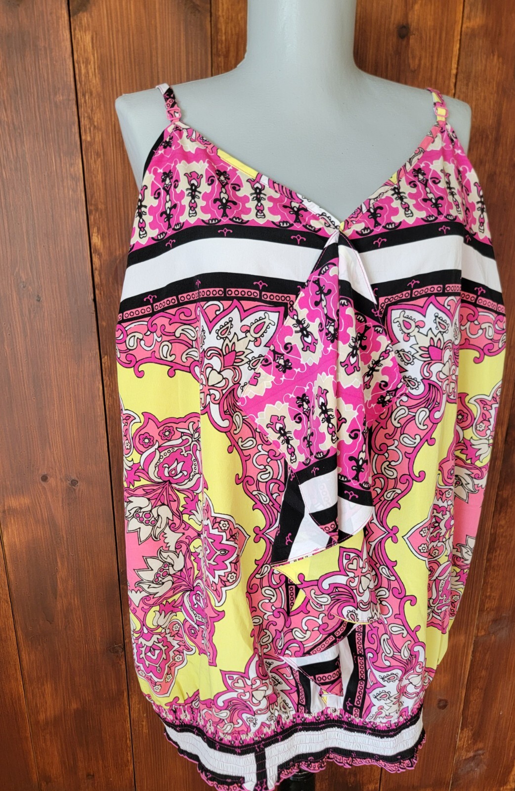 🌸 Lane Bryant Women 26/28 Pink Floral Satin Shell Top | Adjustable Straps | Ruffle | Elastic Waist Vibrant | Plus Size | Flattering | Flowy Description: LANE BRYANT Women's Size 26/28 🌺 Vibrant & colorful floral shell top with a silky satin-like feel! Adjustable spaghetti straps ✨ and an elastic waistband ensure a flattering, comfortable fit. Gorgeous pink florals with pops of yellow, black & white 💛🖤🤍 make this a perfect statement piece for warm weather. Flowy ruffle accent down the chest for extra feminine charm. 🧼 Machine washable — easy care! 📏 Flat Measurements: • Chest: 25 inches • Strap to Strap (shoulder to shoulder): 12 inches • Top to Hem: 18 inches • Waistband (unstretched): 23 inches Material: 100% Polyester Care: Machine wash cold, tumble dry low, cool iron if needed 🎀 Pre-owned and in great condition. Ready to brighten up your wardrobe! Feel free to message me with any questions 💌 💡 Please note: Colors may display differently on various devices. ♻️ Thanks for shopping sustainably! 📦 Ships fast from a clean, smoke-free home! A Few Notes for Buyers: Most of the items I sell come from thrift stores, garage sales, or friends cleaning out their closets. If something isn’t brand new, you can expect some normal signs of wear. I do my best to describe each item honestly and will always point out anything major. Be sure to check all the photos closely! Once your payment clears, I’ll ship your item within 1 business day. Returns are accepted, but the buyer is responsible for return shipping. Thanks so much for looking and for supporting small sellers like me!
