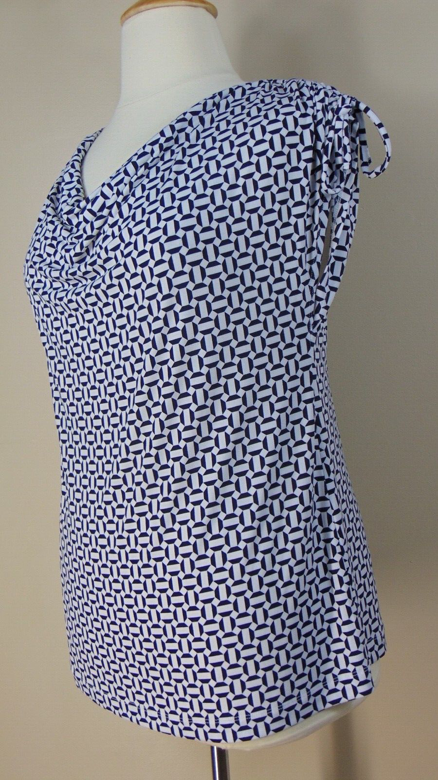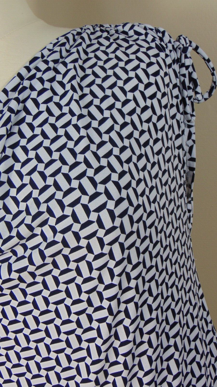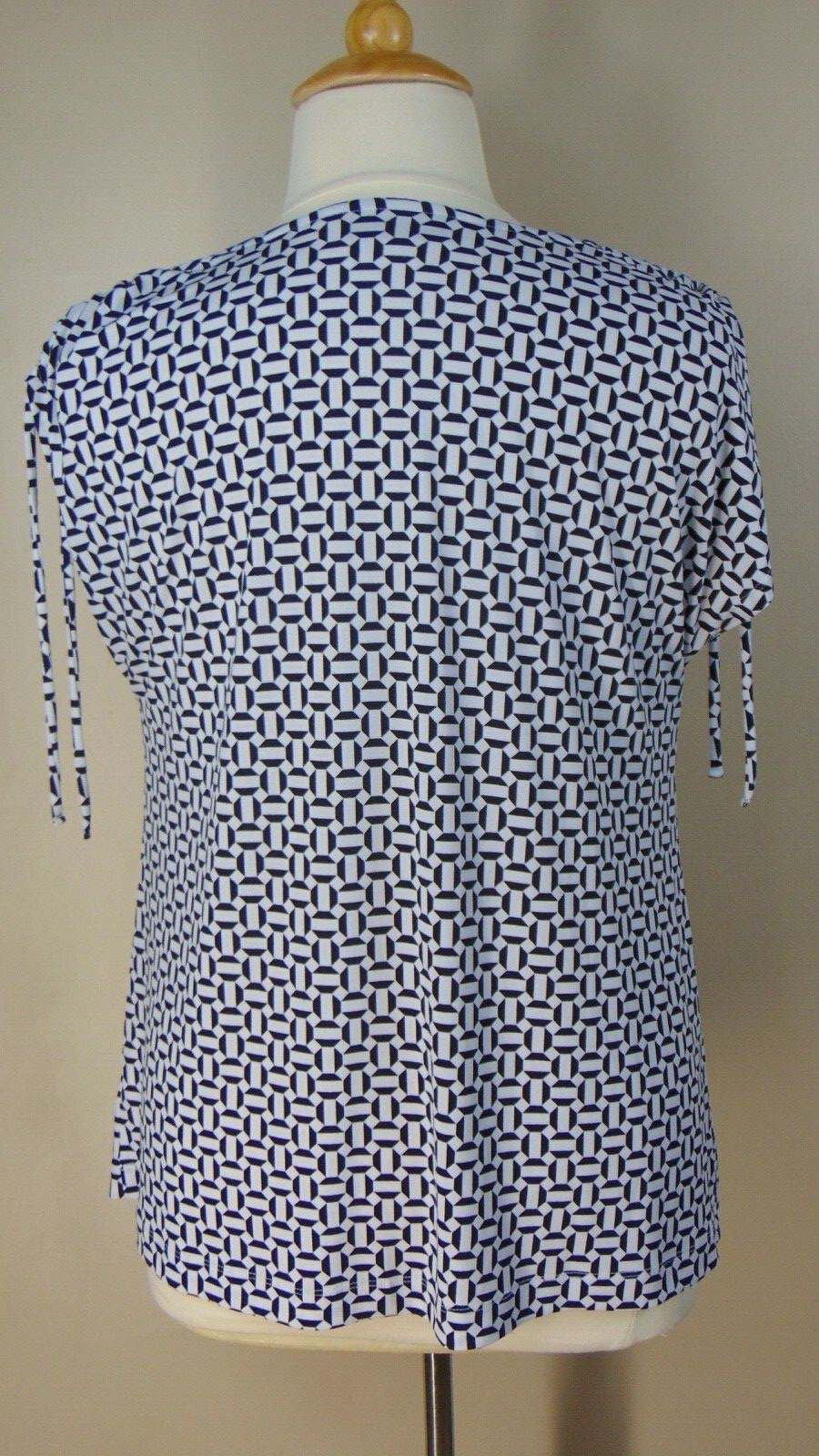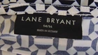 This Lane Bryant blouse is a stylish addition to any wardrobe. Featuring a black and white geometric pattern, short sleeves, and a cowl neckline, it is perfect for casual occasions. The pullover closure and stretchy material make it comfortable to wear, while the ruched tie shoulders and straight hem line add a touch of sophistication. Made from 95% polyester and 5% spandex, this blouse is suitable for all seasons and can be worn in winter, summer, fall, and spring. It is available in women's size 14 / 16 and is a regular fit. It is a basic style top that would be a great addition to any outfit. Measurements: Chest: 19" Flat across Length: 26" All clothing is packaged, and stored in a climate-controlled & Smoke free environment*