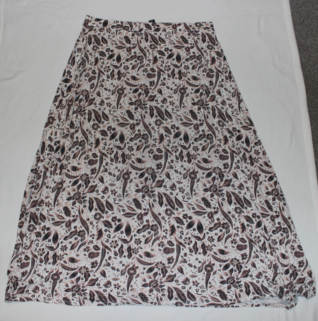 The Lane Bryant Pull On Maxi Skirt in white and pink floral is a stylish and versatile piece for women in sizes 22/24. This maxi skirt features a high rise and a pull-on closure for easy wear. Made from a comfortable blend of spandex and rayon, this knit skirt is machine washable and suitable for various occasions such as travel, weddings, parties, casual wear, formal events, work, and business meetings. The classic floral pattern and multicolor design make it a timeless addition to any wardrobe, perfect for all seasons.