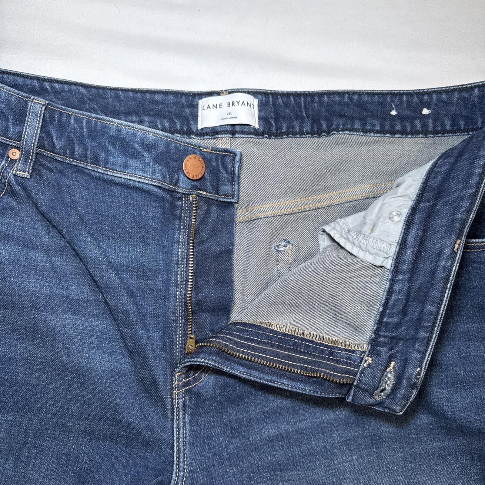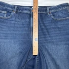 The Lane Bryant Women's Mid Rise Boyfriend Dark Blue Jeans in size 20 Long offer a comfortable and stylish fit for women. Made from a blend of spandex and cotton, these denim jeans feature a straight leg design with a mid-rise waist. The dark blue color and solid pattern make them versatile for various occasions, while the 5-pocket design and zip/button closure add practicality. Perfect for the fashion-forward woman looking for a blend of comfort and style, these jeans are machine washable for easy care. Excellent condition. See photos for measurements.