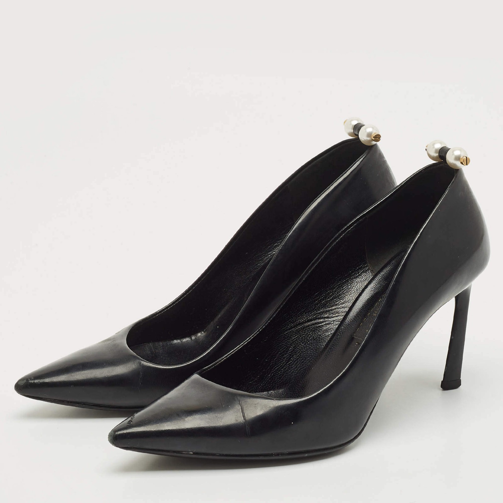 Our eBay Store About Us Contact Us Add to Favorite Sellers Lanvin Black Leather Pointed Toe Pumps Size 36 Classy and sleek, these must-have pumps hail from the house of Lanvin. Crafted from leather, they come in a versatile black hue. These beauties are styled with pointed toes, 10 cm heels, gold-tone hardware, and comfortable leather insoles carrying the brand label. These pumps are a homage to the label's craftsmanship in shoemaking with beautiful pearl detailing at the back. Product Details Brand Lanvin Color Black Includes The Luxury Closet Packaging Outsole Length 26 cm Outsole Width 8.5 cm Size 36 Certified by The Luxury Closet This item has gone through a detailed authentication process overseen by our experts. We offer a lifetime guarantee of authenticity on all our items. How We Check The in-house team of experts at The Luxury Closet is highly trained to verify the authenticity and the condition of the luxury products. They ensure that only 100% authentic items are put on sale.The evaluation process is unique with its own mix of assessment criteria and differs according to the category. Each item is evaluated based on the following combination of hallmarks, hardware, stitching, symmetry, material, craftsmanship, stamping, codes, hologram stickers, and packaging. Our authenticators also check if the items have been modified or amended (e.g., aftermarket diamonds, replaced batteries, repaired bags, etc.) International Buyers Import duties, taxes and charges are not included in the item price. These charges are the buyers responsibility. Please check with your country’s customs office to determine what these additional cost will be prior to buying.