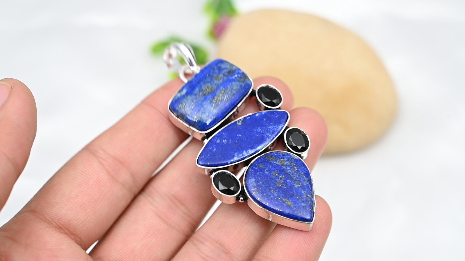 Features:HandmadePendant Shape:Same As PictureTheme:Beauty, Bohemian, Ethnic, Halloween, Love, NatureType:PendantBase Metal:Sterling SilverBrand:HandmadeStyle:PendantMain Stone Shape:MarquiseMetal Purity:925Number of Diamonds:N/AClosure:Same As PictureColored Diamond Intensity:N/ASecondary Stone:Black Onyx, Lapis LazuliDiamond Clarity Grade:N/ACountry of Origin:IndiaTotal Carat Weight:10 carat and aboveColor:SilverChain Type:N/AMain Stone:Lapis LazuliPendant/Locket Type:Same As PictureCountry/Region of Manufacture:IndiaCertification:N/ANecklace Length:2.75"Metal:Sterling SilverOccasion:Anniversary, Birthday, Christening, Christmas, Engagement, Father's Day, Mother's Day, Valentine's Day, WeddingMain Stone Color:BlueMaterial:GemstoneMain Stone Treatment:Not EnhancedMain Stone Creation:NaturalDiamond Color Grade:N/ACut Grade:N/ACollection:HandmadeSetting Style:Same As PictureNumber of Gemstones:6