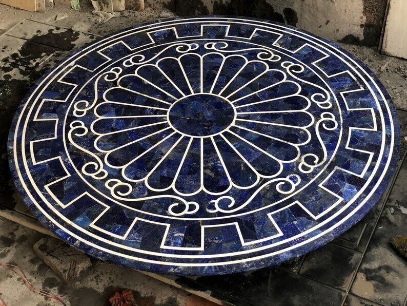 Welcome To Stone-Craft- Creations Shop Description Very unique Art by Indian Artist ,Coffee/Side Table top Used Material: Natural Lapis Stones Arts Size: 30"x30" Inches Color: As Photo Shape: Round Pattern: Handmade Room: Bedroom, Dining Room, Hallway, Home Office/Study, Kid’s Bedroom, Kitchen, Laundry/Utility Room, Living Room,Patio, Playroom Packaging: Wood & Foam Export Packing Shipping: Air Can be customise ,Please message your desired size Process of Making Marble Inlay 1. We are inlaying semiprecious stones in three different colors of marble White Marble,Black Marble & green marble. 2. The Marble used to inlay the semiprecious stone comes from city of Makrana, Rajasthan India. 3. First we cut the marble in different shape example Round,Octagonal,rectangle,oval & square shape. 4. After cutting the marble we paint the surface of marble with Hina(red Color) so we can sketch the geometry on the surface of Marble. 5. With the Help Of emery wheel we cut,polish & shape the semiprecious in different forms of flowers,buds,leafs & stems all the cutting of the semiprecious stones are manually cut by the artisans. 6. After cutting the semiprecious stones we assemble them to complete the motif & then the semiprecious stones are placed on the surface of marble so we can trace them on the surface of marble to make the exact size of the cavities once the stones are traced we remove the stones from the surface of marble & then manually we chisels the marble with the diamond chisels & tungsten carbide chisels once the cavities are completed we place the semiprecious stone in the cavities to check the depth of the stones. 7. When we are fully sure that the stone fits well in the cavities we use special kind glue to fix the semiprecious stones into the marble. 8. After completing the inlays into the marble we first rub the surface of marble with sandstone & then we polish the surface of marble with sandpaper which brings the natural shine on the surface of marble & to the semiprecious stone & we use wax polish to make the surface shiny. 9. Most interesting expect of this pietre dure( marble inlay with hard stone) all the designs are made by the artisans are purely an imagination of artist once made they cannot make another one exactly the same it will look similar but will not be the same. 10. This beautiful art is a dying art of Agra,India the artisans those make this beautiful art are the descendants of those families who built the Tajmahal in 17 century Tajmahal is a monument of love & you can easily see the artwork done with the same technique on the walls of the Tajmahal. 11. I Invite you to come to Agra,India & visit the beautiful Tajmahal & you will surely be impressed & we request you give us a chance to show you the true handmade art of Agra by our artisans. 12. When you are purchasing this beautiful handmade Marble inlay art you will always be happy because all the pcs made by our artisans with love,hope & happiness. 13. You will always be enjoying the beautiful handmade marble inlay artwork secondly you will be supporting the local artisans of Agra,India to keep this beautiful dying art Alive. 14. All the purchase benefits the artisans & the buyer as there is no middle men in selling & buying. Inspiration/Story Behind This Product 1. This beautiful inlay art is a dying art of Agra,India the artisans those make this beautiful art are the descendants of those families who built the Tajmahal in 17 century Tajmahal is a monument of love & and one of the seven wonders in the world you can easily see the artwork done with the same technique on the walls of the Tajmahal. Note 1.The marble inlay table is made in Agra, India. 2.The marble inlay table will be delivered by FedEx or DHL free of cost door to door. 3.If there is any local tax,custom duties or Vat will be paid by the buyer at the destination. 4.The parcel is dispatch with proper packing & fully insured covering all kind of risk. 5.This marble table illuminates if the light arrangement is made under the plate. 6.It is an art piece which will be a beauty & the conversation pieces at home. 7.If You Are Looking Something Customize, Let Us Know We Will Make For You As Per Your Design, Size & Shape. 8. This is only Table Top & Base/Leg is not included. If you want stand/leg also, please contact us For Wholesale or corporate Inquiry please contact us. Thank you very much for admiring beautiful handmade marble inlay art. Please recommend your friends & family members to visit our ebay store this art is Dying art of Agra & we need your participation to keep this dying art alive. Thanking you in anticipation for your great support. If you are in Agra please email us we love to show you the process of marble inlay work at our premises