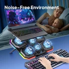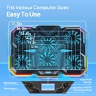 6-Fan Instant Cool: Our laptop cooling pad features a unique 6 fan design for rapid cooling. The laptop cooling stand cools your device in just 1 second, covering all heat-producing areas with 360-degree airflow. This ensures your laptop stays cool and prevents performance drops and hardware damage, letting you enjoy your computer without overheating issues. Eye-catching RGB lighting system: This laptop fan cooling pad adds a dynamic touch to your setup. With various lighting modes and color changes, the laptop cooler transforms your workspace into a personalized gaming environment. Whether you're engaged in a high-stakes game or working late, the stunning lights make your space uniquely stylish. Ergonomic Design: The 7-height adjustment feature provides flexible angles for your laptop, making your use more convenient and comfortable. It effectively relieves shoulder and neck strain from long periods of use. With this ergonomic design, you can maintain a more natural posture, reducing fatigue and making both work and play more enjoyable. Fits All Sizes, Dual USB Ports: Our cooling pad for laptop is designed for versatility, accommodating devices from small notebooks to large 17.3-inch laptops. No matter the model, it fits perfectly and ensures your device stays cool with excellent cooling performance. The dual USB ports enhance practicality, powering the cooling pad while also charging other USB devices, maximizing your USB port utility. Silent Cooling for Late-Night Use: With a quiet operation, our laptop cooling pad ensures it won’t disturb sleeping family members or children. Its low noise design maintains efficient cooling performance without causing any disruption, allowing you to work or game late into the night without bothering anyone around you.