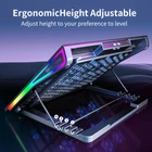 15 Super Cooling Fans: The newest 15-core laptop cooling pad can efficiently cool your laptop down, this laptop cooler has the air vent in the top and bottom of the case, you can set different modes for the cooling fans. Ergonomic comfort: The gaming laptop cooling pad provides 4 heights adjustment to choose.You can adjust the suitable angle by your needs to relieve the fatigue of the back and neck effectively. LCD Display: The LCD of cooler pad readout shows your current fan speed and RGB mode.simple and intuitive.you can easily control the RGB lights and fan speed by touching the buttons. 10 RGB Light Modes: The RGB lights of the cooling laptop pad are pretty and it has many lighting options which can get you cool game atmosphere. Dual USB Ports: The laptop fan cooling pad is designed with dual USB ports, providing additional charging or connection options for accessories like a mouse,keyboard and etc.