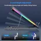 【12-Core Deep Cooling Fans】The F12 Laptop Cooling Pad is equipped with 12 high-speed silent fans, providing excellent cooling effect and temperature control, 360 degrees all-round dynamic cooling; The large metal mesh provides great heat dissipation performance. Four diamond-shaped groove designs bring better heat dissipation space, being built to accelerate heat dissipation.At the same time, these high-end laptop cooling fans are all equipped with capacitor components to reduce working noise, very quiet and create a low noise environment for you! 【Ergonomic Design & Anti-slip Baffle】Equipped with ergonomic stand and 5-level height adjustment settings, this portable laptop cooling pad helps you find the most comfortable angle for all-day use whether you're gaming, watching videos, or working. Two non-slip baffles with additional heightening pads for thicker laptops prevent sliding and provide extra stability. It's not just a laptop cooling mat, but also a perfect laptop stand. 【Colorful Lights 3 Effect Modes】Exclusive Surrounding LED Light: This laptop cooler has the LED glaring colorful light with several colors and three light effect modes; One button to switch, creates a cool atmosphere, light strip surrounding the laptop cooler offers visually stunning display of colors and effects, optimizing your gaming experience.(If you want to turn off the lights, just press the button 3 seconds). 【Two USB Ports & Cell Phone Stand】Dual USB 2.0 Ports and power switch design, which does not occupy the laptop USB port, allows for connecting more USB devices and offers one free USB cable wire (The two USB ports are reinforced and matched with the braided wire USB cable, which will not loose or fall off easily). Phone Stand: The mobile phone bracket is designed on the side, which is easy to place and remove. 【Compatibility & Support】Our foldable cooling pad is compatible with 12-17.3 inch from small to large laptops (such as MacBook Pro, Dell, Inspiron, Alienware, ThinkPad, Lenovo, HP, Pavilion, ASUS, Aspire, Zenbook, Galaxy Book, Surface Pro, etc), tablets, routers, set-top boxes, and more. It's perfect for keeping your devices cool and running smoothly. Our customer service team is available 24/7 to answer any questions and provide professional lifetime friendly service. Package Contents - 1 x Laptop Cooling Stand, 1 x USB cable, 1 x User manual.