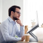 Large fan, Low Noise --- The built-in fan is large which the size is 140mm in diameter, it circulates faster and more air, prevent the overheating problem efficiently. Also it has blue LED light that light up when it running, it’s easy to know the fan is on or off. Wide compatibility & Ergonomic adjustment --- This laptop cooling stand fits a variety of notebooks up to 17.3 inches. You will get the added benefit of adjusting the screen angle and height of the laptop according to what you prefer. Elevate the eye level to the screen, fix your posture, protect you from neck and shoulders pain. Equipped with four 3.0-USB-Hubs --- This laptop stand also has four USB 3.0 ports along the back to plug in various accessories(charging cable, mouse, keyboard, etc.). Along with a separate USB power port to power the cooling fan.(A USB-to-USB cord is provided) More stable and no sliding --- Unique shaft design enhances stability, increasing load bearing. Fits all laptops 10-17.3 inches, such as MacBook, MacBook Pro, MacBook Air, Surface, Lenovo ThinkPad, HP, ASUS, Chromebook and other laptop computers. Rubber mats and feet protect your devices from scratches and sliding on your desk. Smooth edge and no scratch --- Polished smooth edges and silicone pads keep scratch from your device. Elegant and neat design suits for business, office, home and school use. Great office supplies for work.