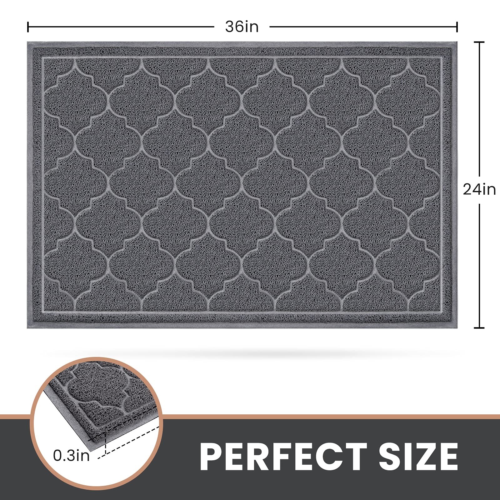 Introducing the Door Mat, a versatile and durable doormat designed to keep your spaces clean and inviting. Measuring 24 inches by 36 inches, this rectangular mat is perfect for both indoor and outdoor use, fitting seamlessly in entryways, patios, garages, and offices. Crafted from waterproof, non-slip PVC and polypropylene, it features a low-profile, machine-made construction with a modern trellis pattern. The slightly raised surface efficiently traps moisture, dirt, and debris, while the non-slip backing ensures stability. Easy to clean, simply hand vacuum, sweep, or wash with mild soap and air dry. Suitable for unisex use, this customizable mat adds a touch of geometric style to any space. Sturdy and Fade Resistant::Door mat is made of PVC material and non-slip backing. This multipurpose entry rug is wear-resistant with material that ensures that color will not fade, even in sunlight Absorbs Moisture & Dirt:The slightly raised polypropylene fabric on the top surface helps trap moisture, sand, snow, grass, and mud, and helps scrape dirt and debris from shoes in an efficient way to eliminate footprints when entering the house Low-Profile Design:Tasteful colors and designs add the perfect finishing touch to any area within your home. The waterproof and low profile design is flat to fit any high traffic area, indoors or outdoors Easy to Clean:To lightly clean, hand vacuum, sweep with a broom, or shake off. For a more serious cleaning, wash with mild soap and a damp cloth, then rinse off. Air dry fully before use. Do not use bleach Wide Use:The floor mat can be placed in areas such as entryway, lobby, patio, garage, office, laundry room, hall, or kitchen. Perfect for indoor or outdoor use. [NOTE] Use rug on dry floor only. Water under rug can cause it to slip
