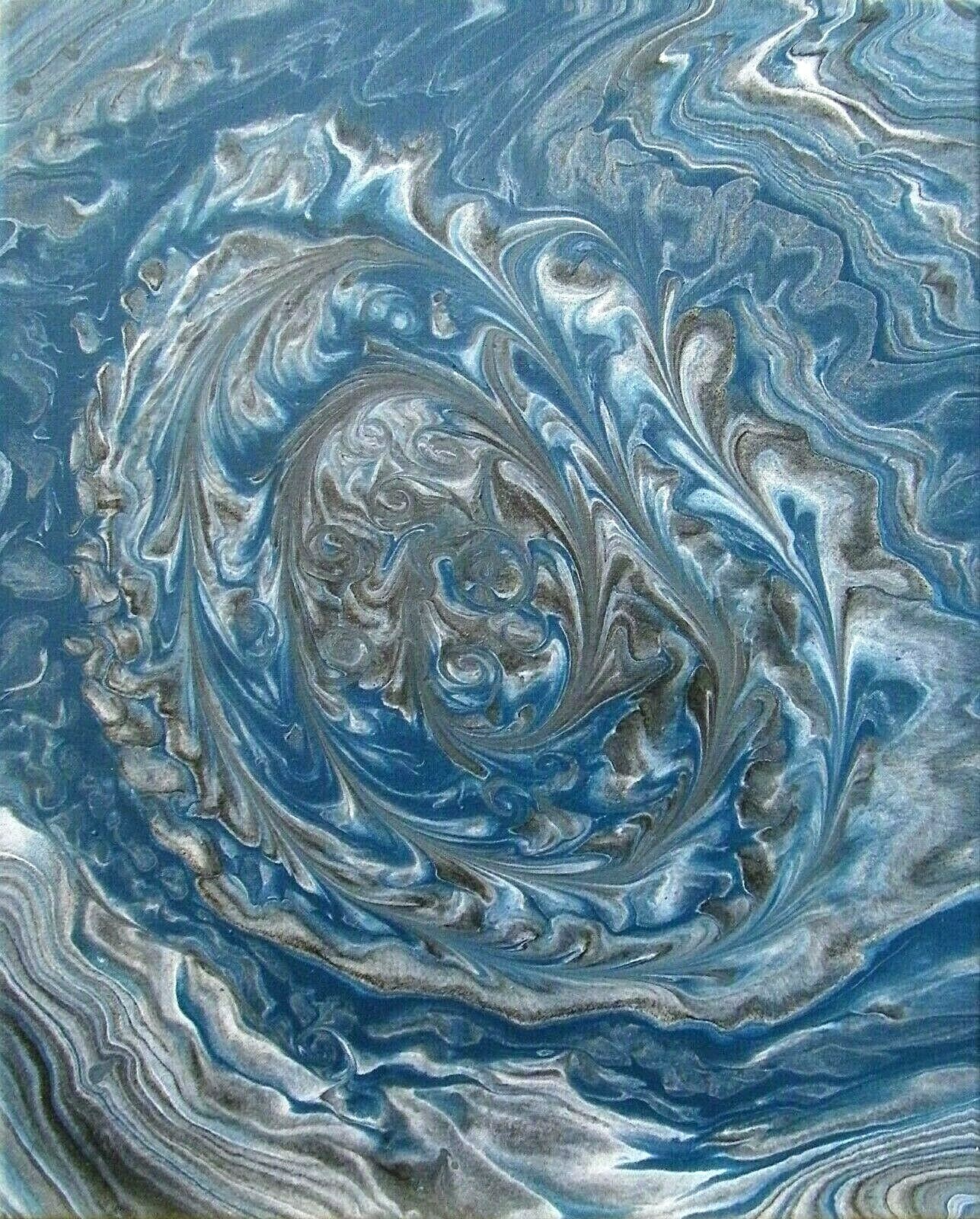 Hello art lovers! I'm thrilled to introduce you to my creation, an original piece of abstract fluid art titled "Vortex." About the Painting: "Vortex" measures 20x16 inches (50x40 cm) and captivates with its swirling blend of deep blue and silver tones, interspersed with soft gray accents. This abstract painting evokes the powerful energy and movement of ocean currents or celestial spirals. Crafted using an intricate acrylic pour technique on high-quality canvas, the artwork draws you into its dynamic vortex, inviting contemplation of the fluidity of nature and the cosmos. The swirling design offers a sense of depth and motion, making it an eye-catching focal point for any room. Whether it reminds you of turbulent ocean waves, an endless sky, or the energy of a cosmic storm, "Vortex" sparks imagination and adds a touch of elegance to any space. Handmade Original: This painting is handmade and signed by me, ensuring its authenticity. It has been varnished to protect and enhance its vibrant colors, preserving the artwork's dynamic finish for years to come. Unframed, this piece allows you the flexibility to choose a frame that suits your interior style or to display it in its raw form for a contemporary, minimalist look. Perfect for: "Vortex" is ideal for art collectors, fluid art enthusiasts, and anyone seeking to infuse their space with natural energy and movement. Its abstract design and color palette make it a versatile choice for modern living spaces, offices, or galleries. Whether you're looking to inspire conversation or add a calming, meditative element to your home, this piece is sure to make a lasting impression. Please note: The colors on your screen may vary slightly from the actual artwork due to differences in screen settings.