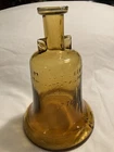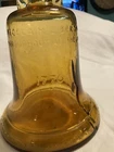 Large Bicentennial Wheaton Amber Glass 1776 liberty bell bottle vase decor. This is a very unique bottle that actually has a crack in it that was manufactured that way. It makes a decorative shelf sitter or vase. It’s a really cool Decor piece. It is large 8 1/2” tall bottle