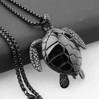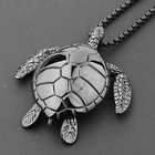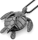 HomeLarge Black Sea Turtle Pendant Necklace Stainless Steel Big Jewelry Men, Womans