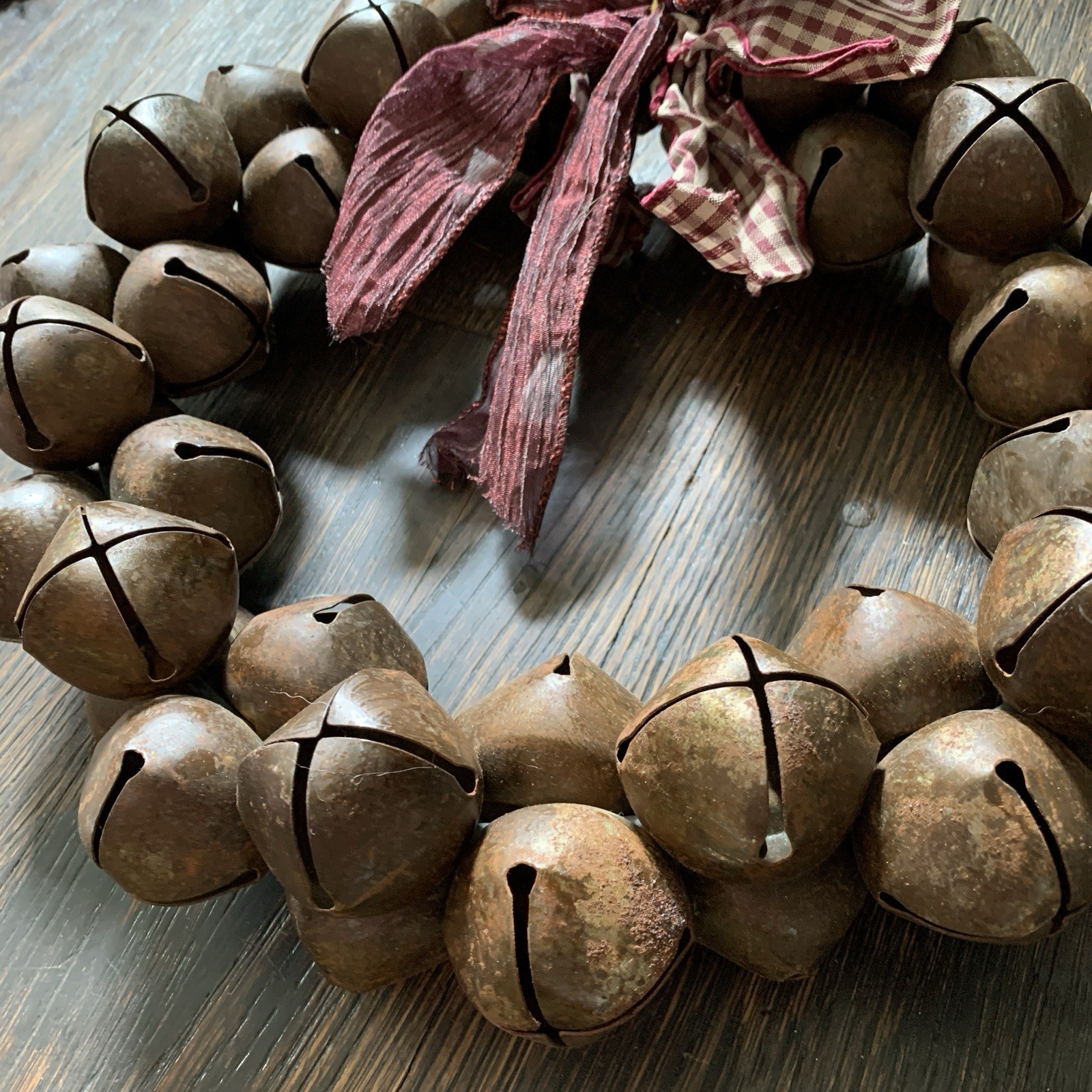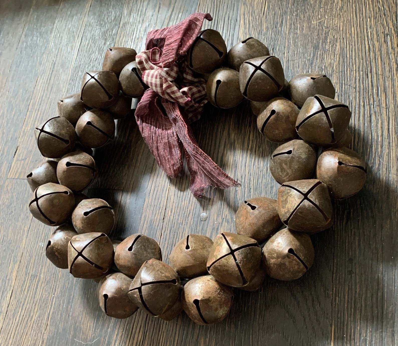 This Large Metal Bronze Bell Christmas Wreath is a unique and festive addition to your holiday decor. Made of metal with a bronze color, this artificial wreath features a beautiful bell design that adds a touch of charm to your farmhouse or folk art-themed Christmas decorations. Perfect for decorating your front door or any room in your home, this 12" wreath captures the spirit of the holiday season with its rustic and artistic appeal.