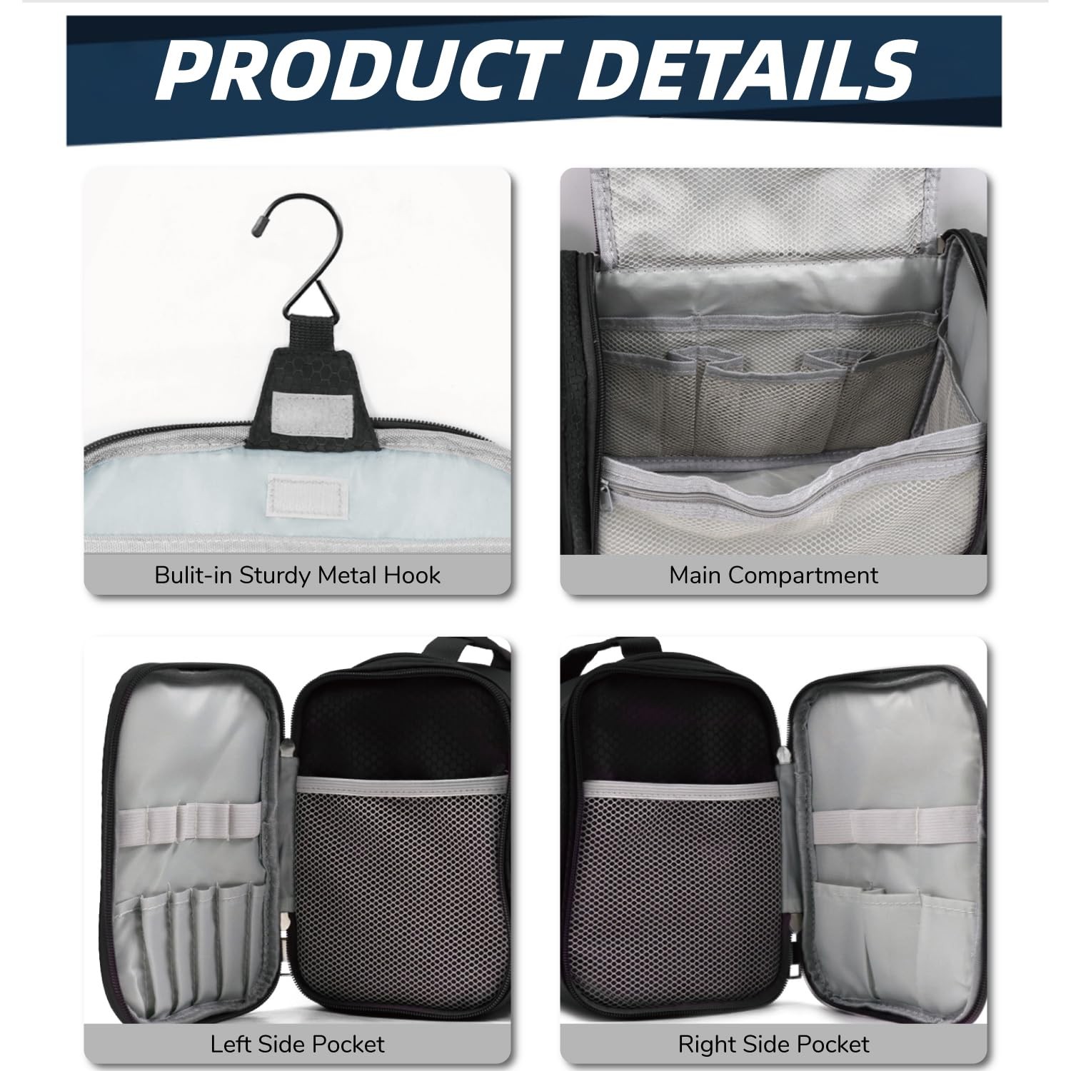 Would you like organizer your travel essentials in classified and sorted well way? extra large toiletry kit may be what exactly you need!!! Travel large toiletry bags are large enough for family couple vacation trips toiletries makeup, foldable, wearable, easily accommodate bottles of shampoo, toothpaste, razor, towels, etc, make storage easier, convenient and neat, perfect for family vacation, business trip, camping, workout shower, busy college student, father’s day and or birthday gift, etc. Numerous compartments interior The waterproof bathroom storage bag with various size pockets to accommodate all your daily toiletries, Built in up to 20 compartments total, include 1 main compartment, 17 upright mesh divider pouches inside and 2 zipper side bag outside, essentials be organized and sorted well, make storage be more simpler. Visible mesh storage pocket inside The durable shower bag with exquisite mesh pockets for see clearly the items in the bag and easy to access your required items, convenient to take and put, breathable. Both of side compartments with elastic bands are perfect for little slim personal essentials like toothbrush, makeup brushes, etc, elastic bands fix them stable without waggles, helps organize your travel accessories neatly. Equipped with Superior quality metal hooks heavy duty for hanging toiletry bag on the wall to take toiletries. Solid and durable handle works excellently either when take out from luggage or hanging it in a closet. Dual metal zipper closure, operate smoothly, make your travel convenient and easy. Large Capacity: large toiletry bag measures 11 x 6.2 x 8.8 inches (27.94 x 15.75 x 22.35 cm), and the X-Large size is 12.5 x 7.3 x 11 inches (31.75 x 18.54 x 27.94 cm). Whether for personal trips or family travel, you can easily pack all your toiletries into one bag, avoiding the hassle of carrying multiple smaller bags Soft and Lightweight Nylon: The large-size toiletry bag weighs only 12.35 oz (350g), while the X-Large size is 17.64 oz (500g), making it so lightweight that you’ll hardly notice the bag’s weight when traveling. Made from soft nylon, the material is durable, water-resistant, and scratch-resistant, ensuring long-lasting use and protection for your belongings Multiple Pockets and Compartments: The toiletry bag has more pockets and compartments than you might expect! It features 2 top mesh pockets ideal for small items like medicine and wet wipes. There is also a large main storage pocket for travel-size and normal-size toiletries, with internal compartments designed to keep liquid bottles upright. Additionally, the 2 side pockets are perfect for long, slim items such as makeup brushes, toothpaste, toothbrushes, and more Practical Hanging Hook: Our hanging toiletry bag features the HANGING function, the metal hook helps you hang the whole bag on the wall, especially in a narrow bathroom, camping tent, or RV. The hanging toiletry bag would save space and be convenient for accessing items while bathing Smooth Double Zipper: Far differing from other toiletry bags Dopp kit adopted aluminum alloy double zippers. The zipper is smooth and strong, so you can zip the bag easily with full items. When one zipper is broken the other is still working