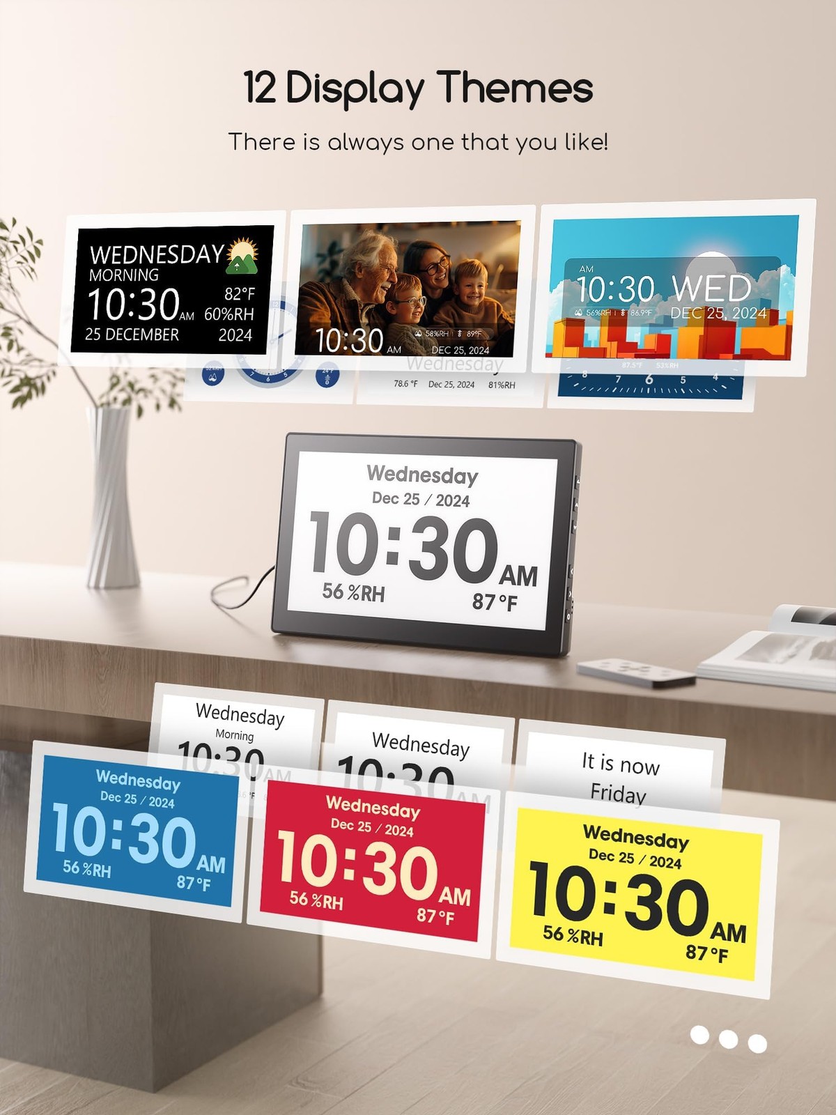 This clock is a total game-changer for my desk! The huge display is so clear, and I love being able to switch themes to match my mood. Setting multiple alarms for different tasks keeps me perfectly on track all day. It’s super functional and looks really sleek.