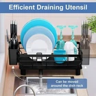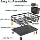 β€οΈππππππ ππππππππππππ:This drying rack for kitchen counter is made of high-quality metal iron covered with a rust-resistant coating to protect the dish racks from rust.The sturdy frame also provides better protection for your dishes. β€οΈππ π ππππππ ππππππππ ππππππ:Under this dish rack is a 360Β°rotatable drainboard with a piston.Upgraded treatment this drainboard with 4 grooves drains more quickly,and no longer worry about water accumulation and water leakage.The dish drying rack makes countertop storage more convenient and tidy,keeping your dishes away from water droplets! β€οΈπππππ ππππππππ:Our dish racks measures 16.9"D x 12.9"W x 5.9"H(43 D x 33W x 15 H cm),store 12 plates,4 bowls,6 cups or glasses and lots of tableware,the dish drainers for kitchen counter is large enough for a family of 4 to use daily. β€οΈππππ ππππ πππππ:The upgraded design saves you 50% of the storage space and 100% of the storage time in the kitchen.You will use these dish racks at least 4 times a day or more.To be with it,space for cooking and storage countertop will be greatly improved! β€οΈππππ ππ ππππππππ:The dish drying rack with drainboard is simple in design,and can be installed within 5 minutes.The drainboard has a piston,which can be used indoors and outdoors.We also promise to provide you with better after-sales service:When the dish rack encounters a few accessories or defects,you can contact us for free replacement. Package Contains: 1 x Cutlery holder 1 x knife block 1 x Iron frame 1 x rubber stopper 1 x Drain tray with spout 4 x drainage board feet Dish organizer To prevent rust, the drying rack for kitchen counter is composed of high-quality metal iron that has been coated, the bottom draining area has a nice center of depth (grooved) making the drained water flow out properly. Easy to Assemble No extra tools needed Everything drains into the bottom tray and then out through the spout into your sink. No leaking onto your counter. The spout is adjustable, so you can move it to adapt to your sink. This is an easy to assemble, organizes and create better drying area for kitchen. Save more space for your kitchen, AIDERLY dish drying racks are perfect for small counters. Makes it space efficient Drain directly into the sink Keeps everything separate Saver of cupboard room Resistant to rusting Easy to clean Extendable Swivel Spout The drain pipe is detachable and also can be rotated 360Β° to fit any side of the sink's drainage needs , the spout that goes into the sink doesn't leak onto your countertop Movable Cutlery Box The utensil holder is removable if it needs to be cleaned or moved to a different part of the drying rack. You can put your knifes in there with the pointy sharp down Anti-slip Drainborad Feet Two-inch feet on the drain tray - it's nice to get the drain tray off the countertop and let air circulate underneath. The elevated drain pan allows for easy cleaning under the rack, no worry about moisture build up and mold
