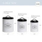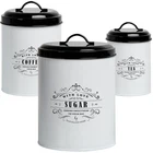 Organized & Decorative Storage Containers - your farmhouse kitchen tea coffee and sugar canister set for countertop will look great in your pantry, rustic kitchen counter or coffee bar keeping those often used food items close at hand Large 3 Piece Canister Set - extra large sugar jar, large coffee jar and smaller tea jar. These storage containers for pantry organizing in stylish white gloss metal with black lids will compliment your modern, country or farmhouse kitchen décor Metal Pantry Containers for Dry Food Storage- Won't break like a ceramic or glass and won't rot or crack like wood No Risk - We know you’ll love your french country farmhouse white canister sets for kitchen counter but if there's any problem please contact us and we'll help you Gift Boxed - our white kitchen canisters set of 3 are the ideal gift for any cooking, baking or home decor lover as a wedding gift, housewarming gift, Christmas present or for anyone you love