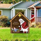 Features: Sporting a warm wooden color, this nativity outdoor decor can blend with any outdoor decor style. The rustic charm of the wood look enhances the aesthetics of your nativity outdoor decor, making it all the more appealing. Our nativity lawn decorations for Christmas brings a fresh vibe to your nativity lawn decorations for Christmas. Its refreshing depiction of Santa honors the spiritual essence of the holiday, making it an attention grabbing addition to your outdoor Christmas decorations. Specifications: Material: Plastic honeycomb panel Color: wooden Size: 23 x 30 Inch/60 x 80 cm Package includes: 1 x Kneeling Santa yard sign Notes: Manual measurement, please allow slight errors on size. The color may exist a slight difference due to different screen displays. Christmas Theme decor: welcome the holidays with our Kneeling Santa Yard Sign; With a notable nativity scene and Santa in a humble position of worship, this expressive yard sign is designed to add a festive cheer to your Christmas decorations and enhance a blissful atmosphere Size for Visibility: sized at approximately 23 x 30 inches (60 x 80 cm), our nativity Santa yard sign is proportioned just right to be easily visible from a distance; It creates an attractive display, capturing the attention of guests and neighbors, allowing your home to stand out during the holiday season Long Lasting: this nativity scene yard sign is made from reliable plastic honeycomb panels, making it strong, reusable, and waterproof; The iron poles are sturdy and resistant to the wind, ensuring it lasts for many Christmases to come; It doesn't break or fade easily, giving you the assurance of its durability Easy Assembly: the nativity yard sign is easy to set up; Simply insert the pole into the attached deck, and then place it into the ground for enhanced stability; With this nativity yard sign, you can bid adieu to worries about its sturdiness during windy days Versatile Christmas Decor: featuring a classic Santa kneeling posture, the Christmas yard decorations outdoor adds a strong festive ambiance; It can be decorated courtyards, lawns, gardens, sidewalks, walkways, front doors, entrances, and porches, expanding your Christmas yard decorations outdoor