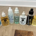 Mixed lot of oils and repair supplies for brass and woodwind instruments. Includes Yamaha, Roto, and other valve, slide, and key oils, cork grease, lubricants, cleaning brushes, wires, pads, pins, pliers, and more. Some bottles are partially used, others new or unopened. Ideal for instrument technicians, repair shops, or collectors. Everything shown in photos is included. Sold as-is, untested. Almost every bottle of oil or other liquid contains less than half its capacity.
