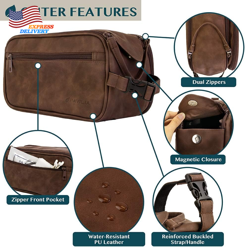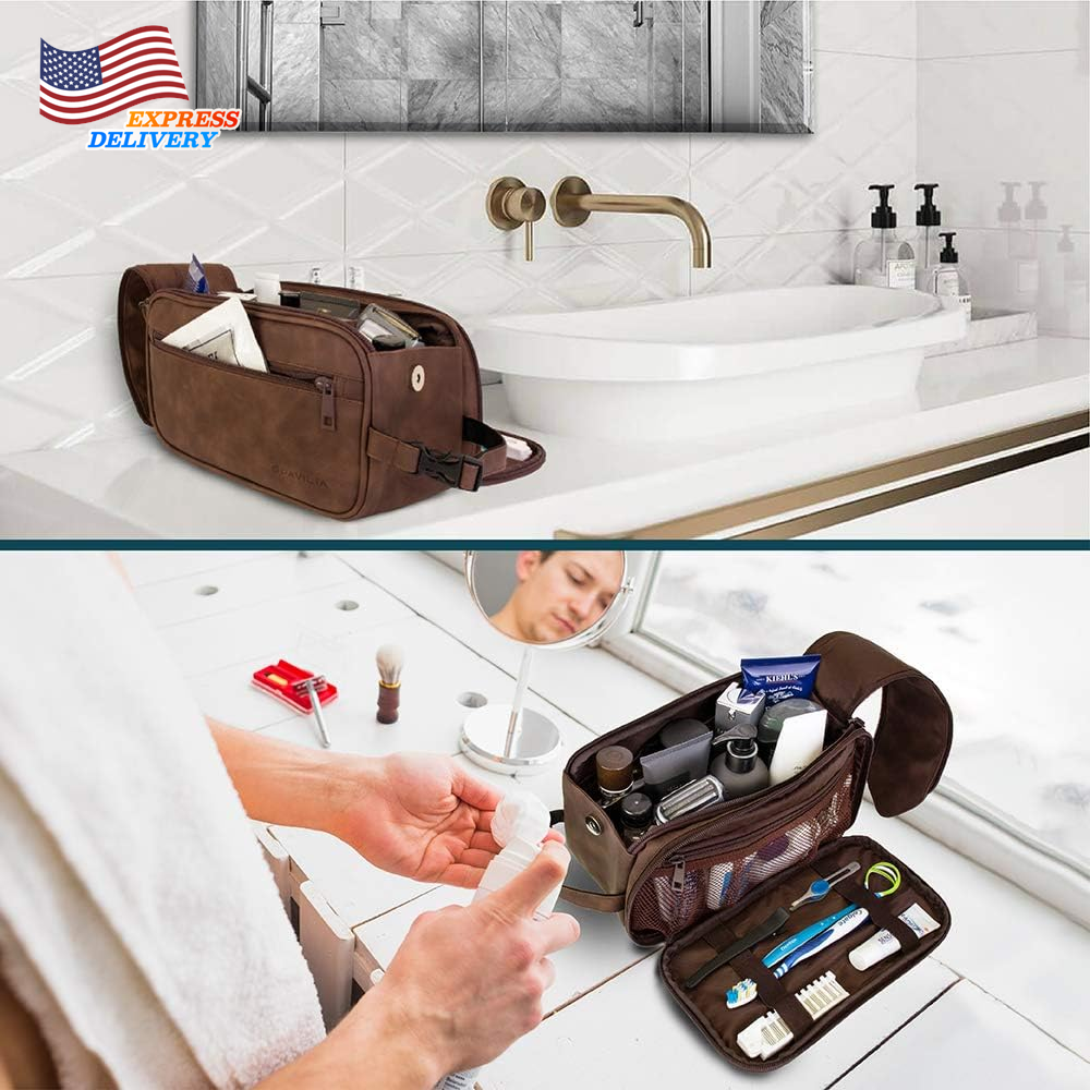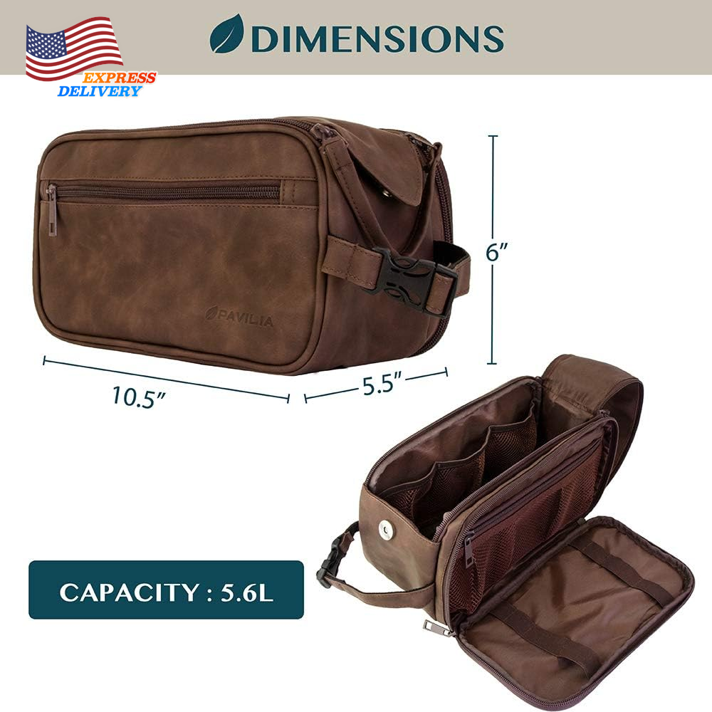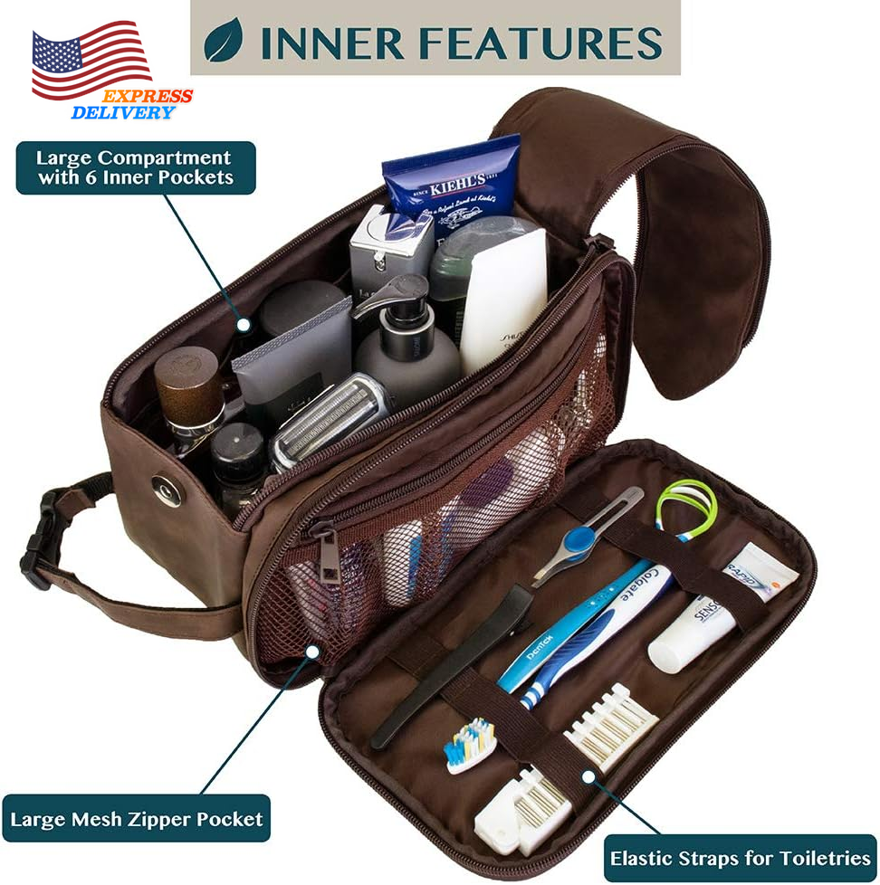 Store New Arrivals Add to Favorite View Feedback Contact Large Men's Leather Toiletry Bag Travel Shaving Dopp Kit Organizer Bag w/ Zipper Description Color Dark Brown Product Dimensions 10.5 x 6 x 5.5 inches Item Weight 8.4 ounces Department mens Size Large (10.5x5.5x6) MENS TOILETRY BAG: This functional PU leather toiletry travel bag has a large compartment and side pockets with additional pockets to hold all your toiletry, shaving, and grooming accessories. Equipped with elastic bands and additional mesh pockets to keep your hygiene items secured while traveling or at home, this cosmetic make up case will help you stay organized. LARGE OPENING TOILETRIES TRAVEL BAG: This toiletry bag organizer has double zipper design that allows for easy access to the large main compartment. With one simple pull on the handle, you can easily access key accessories such as shaving kit, tooth brush, and shampoo. This toiletry travel bag has the convenient design that helps you stay organized and makes this travel bag case an essentials during any traveling, flights, hotel stay, and weekend vacation. WATER RESISTANT TOILETRY BAG DOPP KIT: This toiletry case kit is made from high density PU leather with added side padding for durability and extra protection to keep your toiletries safe and protected during travel. The lining is water-resistant to prevent liquid splashes from entering the bag or luggage. The toiletry bag also offers excellent wet/dry separation so you can keep wet accessories in a separate compartment from dry toiletries during camping, road trips, weekenders. TRAVEL ESSENTIALS FOR MEN: The handle has a clip-on buckle to easily attach any bathroom bars and hangers so you can easily access this travel organizer in hotel rooms, bathroom, and showers. Its compact design means the toiletry bag is easy to pack and fits well in luggage and backpacks. This makes a great gift for father, men, boyfriend, uncle, husband, groomsmen and is especially appropriate for fathers day, Christmas, Birthday and those who love to travel. LARGE CAPACITY TOILETRY TRAVELING BAG: Measures 10.5 x 5.5 x 6 inches (L x W x H), the toiletry bag is large and roomy with ample room to store all essentials, accessories and toiletries during travel or home use. Easily fits all shaving kits, toothpastes, showering bathroom tools in this bag. Simply wipe clean with a damp cloth. Product Description Durable Materials Water resistant fabric keeps your interior dry and safe. Extra side padding keep your belongings protected during transport Magnetic Side Button The magnetic button keeps the top flap secure. Lift the flap to unzip the entire main compartment in one easy motion Keep Super Organized Spacious main compartment and side compartment with fasteners to keep your personal items neatly organized and easily accessible Buckle Clip Handle The handle is also a detachable buckle clip for attaching to various mounting points for transport or to hang on ABOUT US We offer the best prices around on high quality products. Our E-store includes media such as books, movies, music and games while offering electronics, toys, sporting apparel, clothing, tools, general home, garden items and more. SHIPPING We are always working hard to ensure your package arrives as soon as possible. Please understand that some factors like weather, high postal traffic, and the performance of shipping companies are outside of our control. We offer free shipping to the lower 48 states and ship within 2 business days of payment, usually sooner. We do not accept P.O. Boxes. Please provide a physical address. For shipping outside of the continental USA, we only use eBay's Global Shipping Program.The item is shipped to KY and then sent to the rest of the world. International customers are responsible for all duties and taxes. Continue to check out in order to calculate costs for shipping the item to your country. Messages regarding eBay's Global Shipping Program MUST be directed at eBay EXCLUSIVELY. RETURNS We offer a 30-Day Return Policy on items which you are not completely satisfied with. You have the option for a full-refund or an exchange of the item. No returns are available on items shipped outside of the USA. PAYMENT We accept PayPal. CONTACT US This page content is yet to come Please ad us to your favorite seller and visit again later Thank You CUSTOMER SATISFACTION We try our very best to make sure every customer is completely satisfied. If there's a problem, message us! We're happy to help. WE ACCEPT Copyright © 2021 AutoDS. | All Rights Reserved