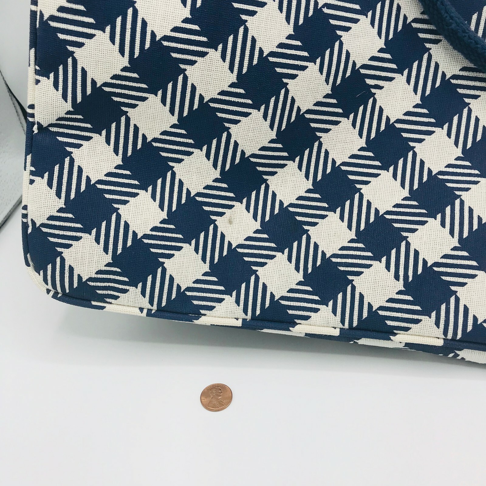 Adorable Bag. Measures 14 x 18.5 Has two tiny stains that can be removed with cleaning. Please use pictures as an inclusive part of the description. Colors can vary on monitors. Happy to combine shipping with other items currently listed. We happily ship internationally. We are celebrating 20 years on ebay and are happy to offer many varied items for collectors and consumers alike.