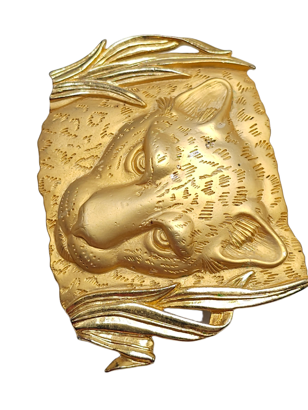 Large PARK LANE Tiger Brooch Matte Gold Plated Detailed Signed Vintage Jewelry Brand: Parklane Textured Jungle Reeds Leopard Face Brooch Pin Gold Tone Vintage Measurements: See Photos! Condition: Pre-Owned Good Gently Used - See All Pics for Condition - some wear see pics