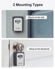 4-digit combination key lock box makes your home accessible to your trusted friends; perfect for home owners, family members, vacation rentals, property management etc. With key storage lock box, you don't need to hide your keys under the carpet, flowerpot or doormat, it is really convenient for daily outdoor sports, home services etc. Why Us? Safe and durable: Made of high strength aluminum alloy and heavy-duty steel protects the box from hammering and sawing. Flexible shutter shields the dials from rain and snow. 2 ways of using: 1. With the removable shackle, lock box can hang on door knobs or anywhere you like. 2. You can install the lock box on walls easily with the provided accessories. How to install the lock box on wall? 1. Draw screw outline. 2. Drill holes on wall. 3. Nail the expansion plug into the hole. 4. Insert and tighten screws. If you remove the shackle, you can use 2 black rubber stoppers provided to protect the lock box from dust, rust, rain and snow. How to reset your password? 1. Open the lock box with the defaulted password 0-0-0-0. 2. Push the reset lever to position B 3. Set your own password. 4. Push the reset lever back to position A Package Contain: 1 * Key lock box 4 * Screw 4 * Expansion plug 2 * Rubber stopper 1 * User manual Easy to Install: Key lock box comes with a removable shackle, providing wall-mounted and hanging installation - 2 installation options. You can mount it on the wall of your apartment or office. Or you can hang it on the door handle of your home. Large Capacity: The key lock box has ample internal storage space for safely storing your house keys. You can put your keys in the lockbox for emergency entry when you go for business or a trip. No need to worry about forgetting to bring the key. Combination Lock: The resettable code offers 10,000 possible codes for optimal protection. The 4-digit combination is easy to remember and reset, and ensures the security of your keys. Sturdy and Durable: key safe box is made of premium aluminum alloy and reinforced steel; the robust and durable shell protects the security lockbox against hammering and sawing. Multiple Application: waterproof key cabinet has a protective door, protecting the lockbox from dust, rain, etc. Suitable for apartments, rental houses, and warehouses' key storage. Ideal for indoor and outdoor key storage, Airbnb realtors, cleaners, pet sitters, etc.