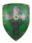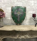 • This Celtic Cross wall sculpture is made of polyresin, handpainted and polished individually. Is a replica of the legendary high cross shield of faith that Celtic warriors carried into battle! • This cross shield cress wall sculpture is designed in shamrock green color to commemorate Saint Patrick's Faith and Commitment to the Christian Faith of Jesus. In the new testament of the Bible, faith takes the form of a shield in a believer's life. Display this crest on your wall to remind you of the importance of the shield of faith. • This Celtic Cross wall sculpture measures approximately 17" tall, 13.25" wide and 1.75" deep. It is highly recommended to anchor your screws before mounting. The wall sculpture weighs about 3 pounds. • This is an Ebros exclusive collection. They are backed by our Ebros Gift Satisfaction Guarantee when sold by Ebros Gift.