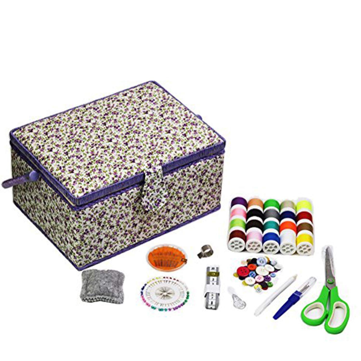 Large Sewing Basket with Accessories, Sewing Organizer Box for Sewing Supplies and DIY Crafting Tools Storage, Sewing Kit Tools for Sewing Mending Product Details Color: purple Brand: Flrhsjx MPN: GB0402 UPC: 726972274606 EAN: 0726972274606 Material: Wood, Fabric Color: purple Brand: Flrhsjx Shape: Rectangular Product Dimensions: 9.17"D x 12.2"W x 6.38"H Material: Wood, Fabric Color: purple Brand: Flrhsjx Shape: Rectangular Product Dimensions: 9.17"D x 12.2"W x 6.38"H Style: Retro Room Type: Living Room Recommended Uses For Product: Storage, Sewing Number of Pieces: 1 With Lid: Yes Handle Material: Wood Closure Type: Buttons,Snap,Magnetic Special Feature: Built-in Pin Cushion and Organized Storage Compartments Manufacturer: Flrhsjx UPC: 726972274606 Part Number: GB0402 Item Weight: 3.05 pounds Item model number: GB0402 Item Package Quantity: 1 Special Features: Built-in Pin Cushion and Organized Storage Compartments Included Components: Thread Batteries Included?: No Batteries Required?: No Date First Available: April 2, 2020 QUALITY DESIGN: Classic sewing basket in retro flower print, large compartment space for more sewing supplies and tools. PACKAGE CONTAINS: We also give you the following sewing accessories when you buy this basket: 20 bobbin threads,marking pencil with brush, tape measure, seam ripper, scissors, 32 pearlized head pins, assorted needles, pin cushion, buttons, needle threader, thimble. PERFECT DETAIL: This delicate and useful sewing box with Interior storage plus organization with tray insert, magnetic snap closure easy to open and close, collapsible wooden handle easy to carry. PRACTICAL CHRISTMAS GIFT: It's a great gift for beginner,family and friend, Christmas and birthday gift, whether you are a hobbyist just starting out, you just need a useful and delicate sewing kit basket for your sewing and embroidery work. SIZE: This sewing basket measures 12.2 x 9.17 x 6.38 inches, large size allows you to store various sewing tools.