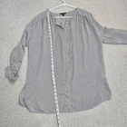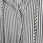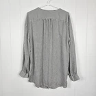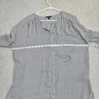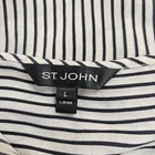 Womens Large St. John Silk Blend Blouse Black White Striped Vertical Button Front Tunic Hidden Buttons Good pre-owned condition