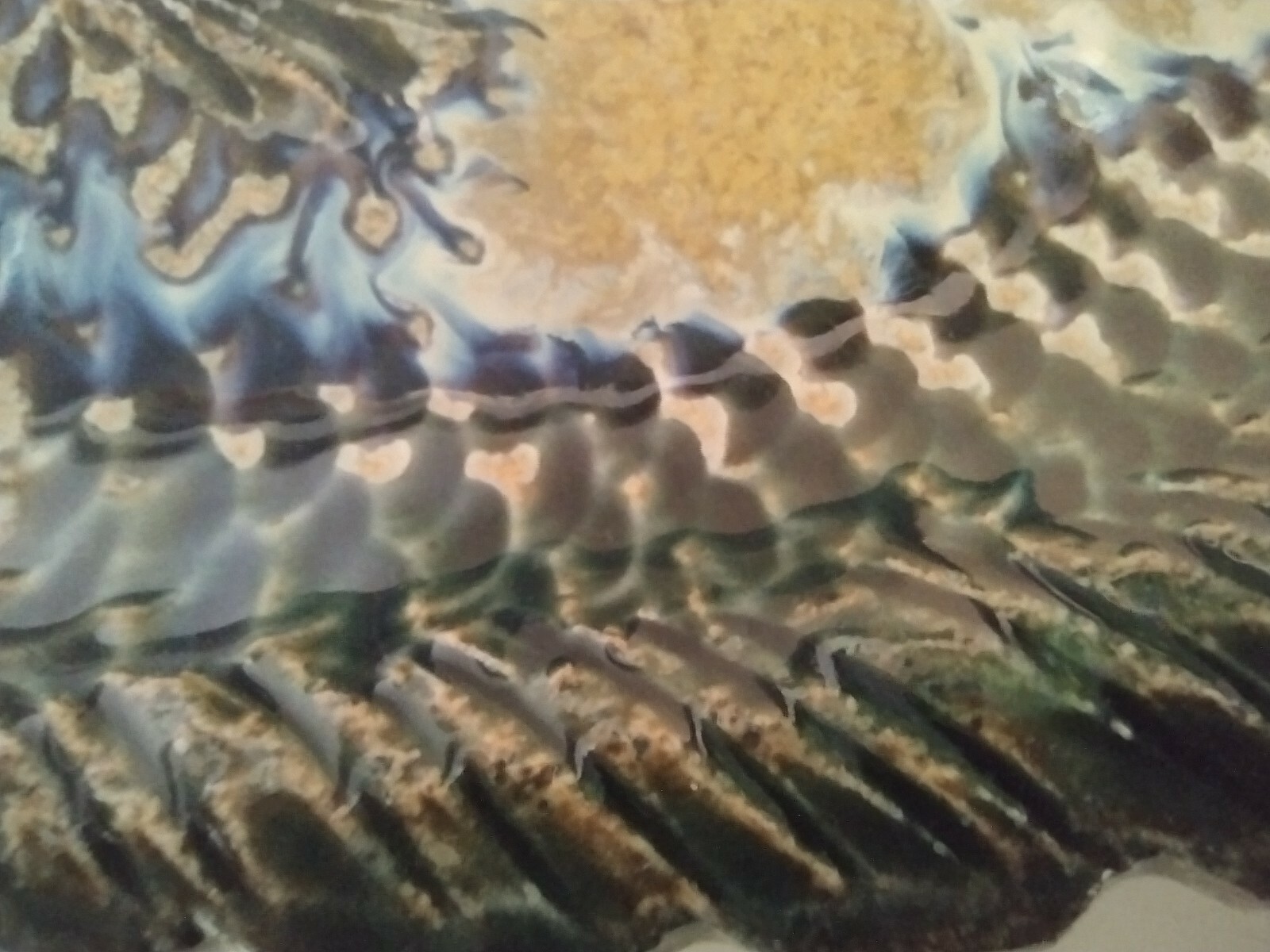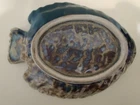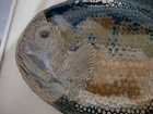 Handmade Fish Platter Pottery Stoneware. This plate is very detailed and there is a glazed finish on both pieces but there are parts where the plate isn't painted or glazed which was intended as part of the piece. It measures approximately 13.5" nose to tail and 10.5" wide. It is in excellent condition with no chips or cracks. Shipped with USPS Ground Mail.