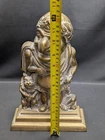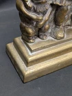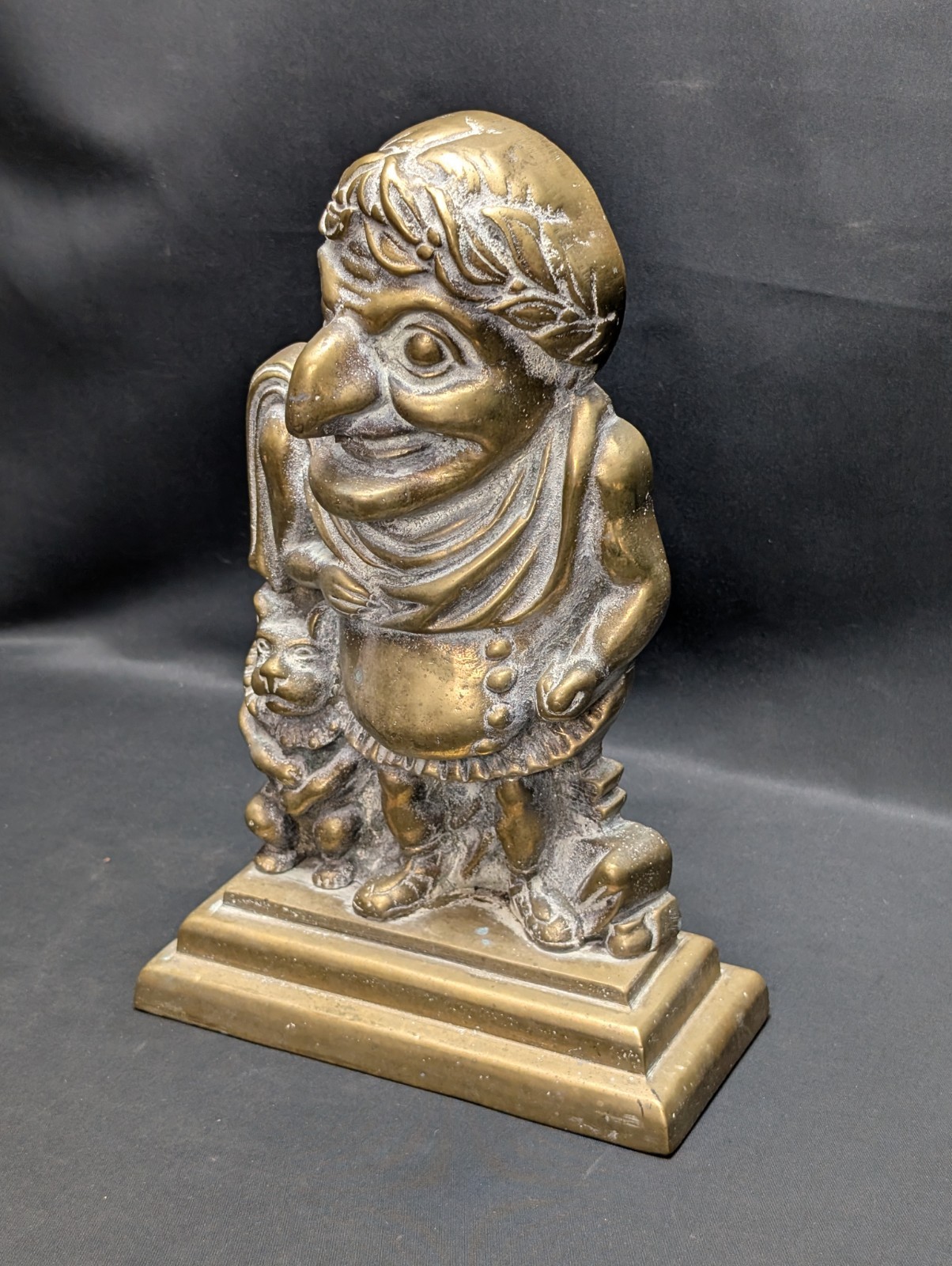Victorian era cast metal figural doorstop depicting Mr Punch dressed as a Roman Emperor, accompanied by an integral dog at his side. A classic character from the Punch and Judy tradition, produced as a heavy decorative doorstop or mantel ornament. The figure stands approximately 30 cm tall and weighs around 3.6kg, indicating a substantial and well cast example. The dog is part of the original casting and not a later addition. The brass surface displays a rich aged patina with areas of natural surface oxidation, including lighter and darker tones consistent with age. Condition is good overall with no breaks or repairs observed. Surface wear and patina are present throughout and should be expected on an antique piece of this period. A highly decorative and increasingly collectible Victorian metal doorstop, well suited to traditional interiors or collectors of Punch and Judy memorabilia and period decorative metalwork. Please inspect the photos to check the quality/condition for yourself. PLEASE READ THE BELOW CAREFULLY IN REGARDS TO ALL USED ITEMS IN OUR STORE. Most of our items are in used condition with some wear from general use and as such, they may show some marks. Please ensure you examine the pictures as we aim to capture any considerable marks/damage in images and we will only sell items we consider to be usable. The pictures allow you to inspect the finer detail and quality of the product before purchasing, zoom in for further inspection. Please ensure you're happy with measurements shown in photos as some items may appear bigger than real life due to close-up shots. Vintage electronics sold as "working" are tested and functional at time of listing, but may require future maintenance or component replacement due to their age. Items listed as "spares & repairs" are sold for parts/restoration and functionality is not guaranteed. No warranty provided on continued functionality for any vintage electronics. Some electronics may have security stickers placed over access screws to prevent tampering. If these stickers are removed or tampered with, no refund will be given. Rest assured, refunds are available under normal circumstances as outlined below. Items are sold as-is based on photos and description. We accept returns for change of mind or if the item differs from what was described or pictured - please see our returns policy for full details. From a smoke and pet free home. Some items may require cleaning before use, we clean what we reasonably can but recommend inspection upon receipt and clean if necessary. Items do not come boxed or with certificates unless stated otherwise in our descriptions. Questions are welcomed before purchase if you need any additional details or clarification. Please choose your preferred postage courier at checkout - we offer Evri & Royal Mail. Where possible we try to use recyclable materials for packaging. We may also choose a different service or courier depending on your location, item value, and package size. Feel free to contact us if you need to discuss postage options. We have many more items in our store, from pottery, glassware, cameras, vintage, antiques, clothing, trainers and much more. Feel free to check it out. Thank you from the Basement Hoarders team.