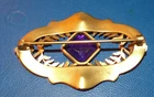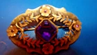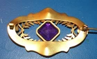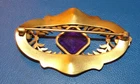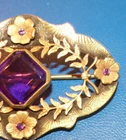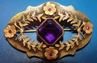 THIS IS A LARGE VICTORIAN SASH PIN BROOCH ART NOUVEAU STYLE BRASS W PURPLE STONES . I DO NOT KNOW IF THIS IS A ANTIQUE OR NOT. I THINK THAT IS VINTAGE, BUT I'M NOT SURE. THE BROOCH IS IN VERY GOOD CONDITION. THERE IS NO VISIBLE WEAR OR SIGNS OF USE. THE STONES ARE INTACT. THE PIN WORKS JUST FINE. PLEASE SEE PICTURES FOR MEASUREMENTS. THE BROOCH IS NOT MARKED. PLEASE EMAIL ME IF YOU HAVE ANY QUESTIONS. THANK YOU FOR LOOKING. THE BROOCH IS SOLD AS IS.