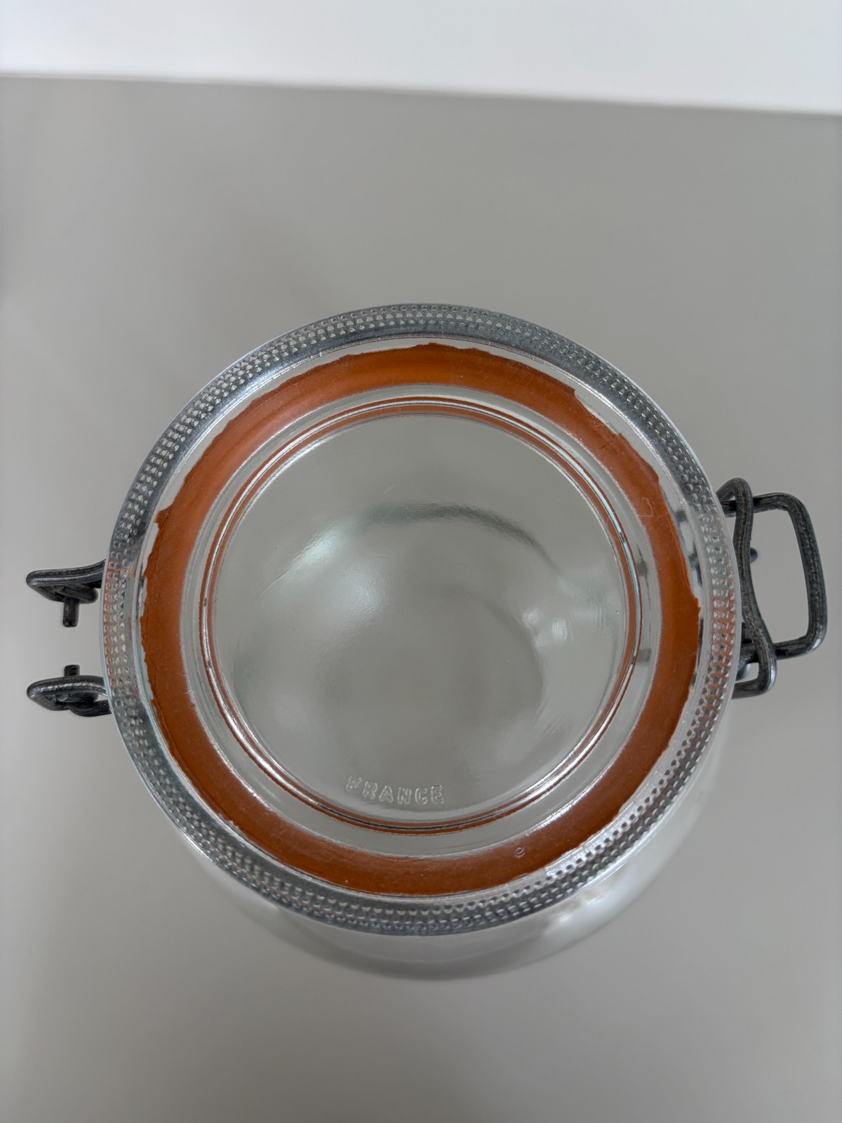 Large Vintage 3L Mason Style Glass Canning Jar Hinged Metal Bale Closure Seal Made in France Measures 10" high, 3.5" top opening, 4.5" across bottom Ideal Jar for storing and preserving a variety of goods with an airtight seal Jar is in good vintage condition. Wear consistent with age. Orange seal has some fraying. See all pics Please email with any questions Comes from a smoke free and pet free home Thank you for looking