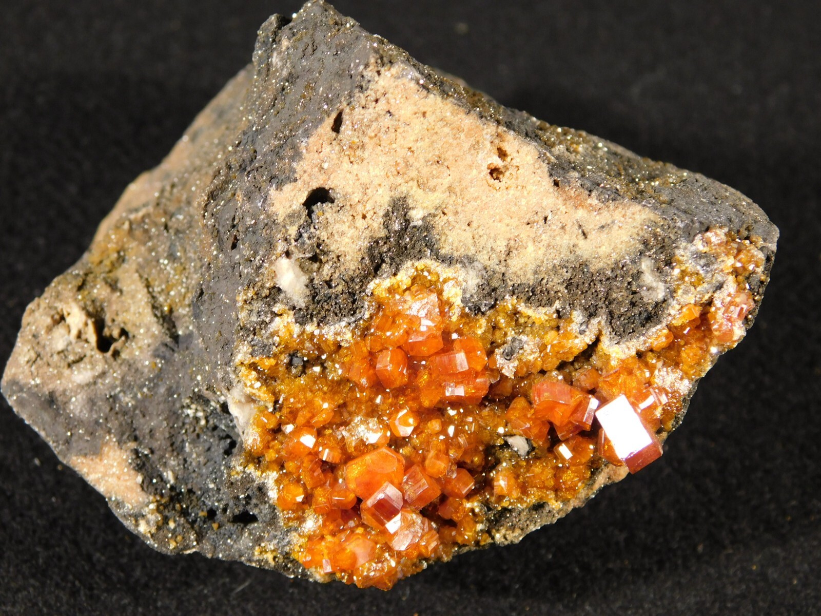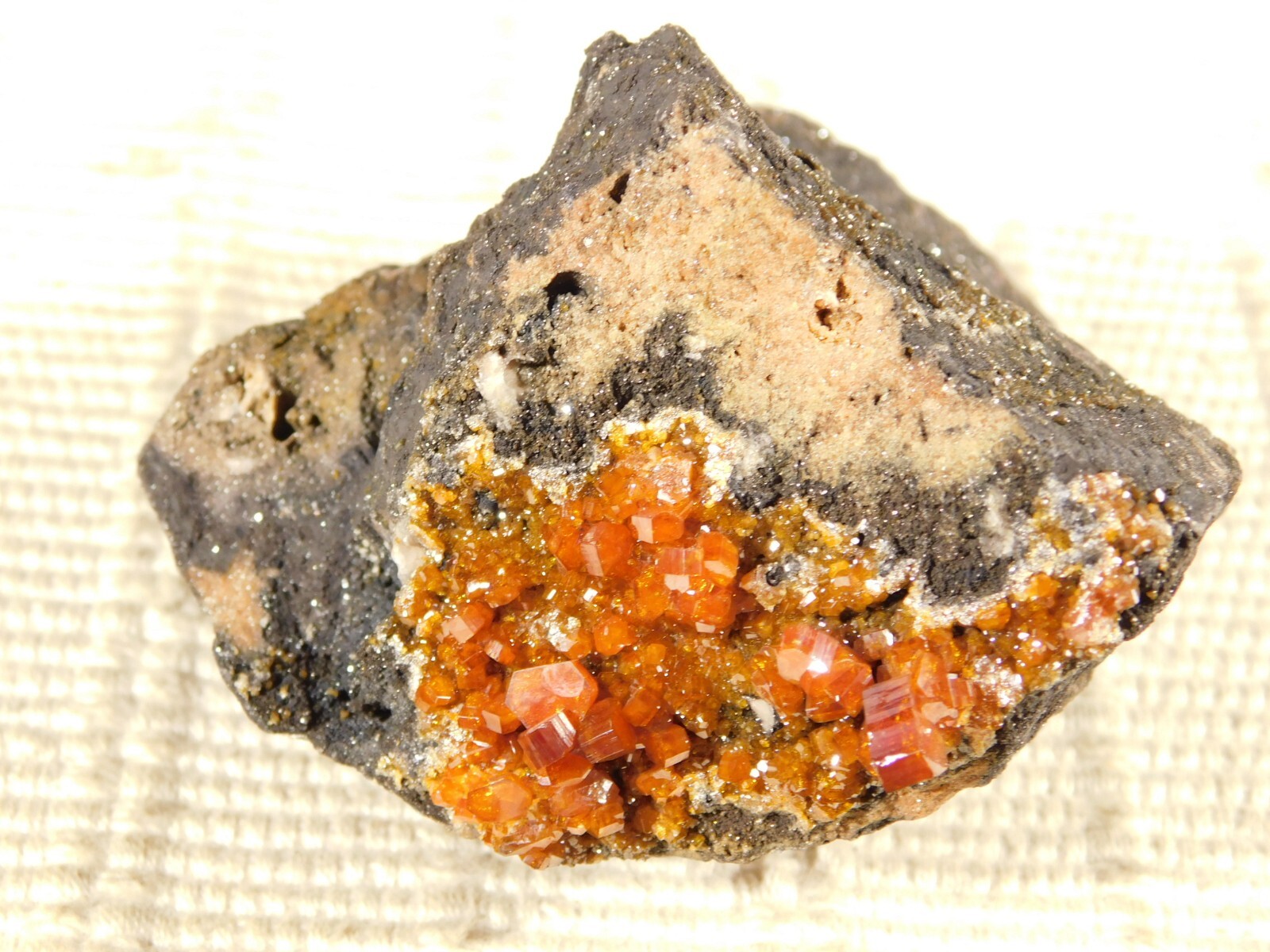 Hello, here is a Larger! 100% natural Vanadinite Crystal cluster with PERFECT shiny DEEP ORANGE crystals on a contrasting BLACK colored matrix! This cluster was mined in Morocco. Please note that this piece is WAY nicer in person as it is difficult to get all of the detail and true colors to show up in the photos! The overall cluster or matrix measures around 3 3/8" or 8.35cm at its biggest or from opposing side to side. INTERNATIONAL BUYERS PLEASE NOTE : Import duties and taxes are not included in the price of the item or the shipping charges. These are the buyers responsibility. If you are concerned about them, please check with your country's customs office before purchasing. RETURN POLICY We guarantee you will be satisfied with your item or we'll refund your purchase price, less shipping charge, upon safe return of the item in original condition within 14 days. Prior to returning the item, please contact within 48 hours of receiving item. Buyer is responsible for all return shipping charges.