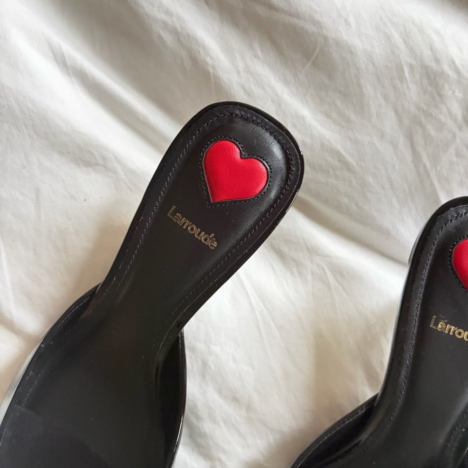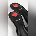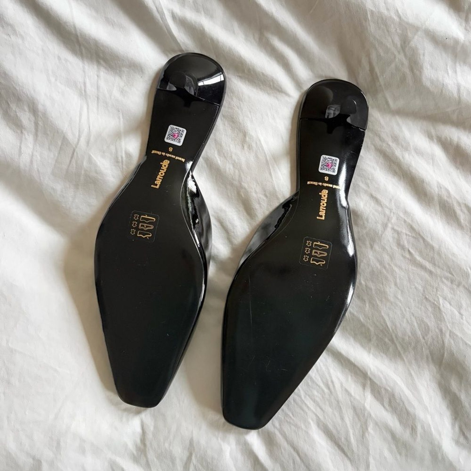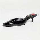 Beautiful Larroude Black Patent 'Amal' Mules. Slip-on. Square toe with kitten heel. Named after the chicest Amal Clooney, versatile for work or parties. New, never worn. Size 8.