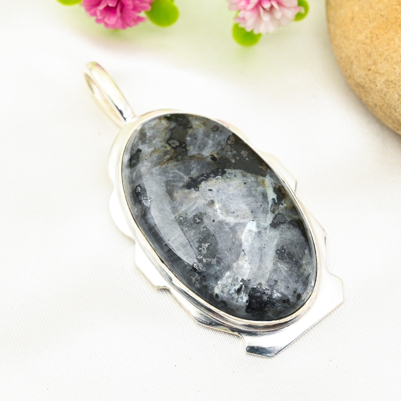 Larvikite Gemstone Pendant in 925 Sterling Silver Handmade Jewelry Gift