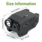 SPECIFICATION Lumen: 300LM Lighting range: 150 meters Laser wavelength: 650nm Endurance time: Laser + lighting at the same time, battery life: 45 minutes; Working time only with lighting: 60 minutes, Working time with laser only: 4 hours Battery capacity: 300mAh Battery: built-in lithium battery Charging time: 50 minutes, the charging indicator is red and fully charged green Lighting mode: strong light, flash Suitable for rails: suitable for 20-21mm Picatinny rails Size: length: 5cm, width: 2.99cm, height: 2cm Weight: 75g FEATURES 【Huge Performance】 - Extreme bright LED flashlight and laser sight combo. Very bright with such a small size, combining both highly visible green beam and 600 lumens of white light, 200-250m highly visible distance. 【Two Versatile Settings】 - Flashlight includes steady on/strobe modes. Working modes: Steady/Strobe light, Pistol laser Only, Steady/Strobe Flashlight+ Green Laser, Green laser beam can be adjusted vertically and horizontally. The package contains a small wrench, which can be inserted into the hole to adjust the accuracy of the green dot,The green laser light combo is very powerful and can be seen at distances of up to 200 meters! 【FITMENT AND DESIGN】- Lightweight and featuring a quick-release mount feature and tactical bezel. Robust aluminum material makes the green laser beam firm and stable, can with stand strong impacts and vibrations. It will not shake or fall after installation, IPX4 Waterproof and lightweight, it’s a perfect tactical light for, security, or bodyguards. 【Pistol Light Laser Combo】- This versatile pistol light lase for pistol can be mounted on any with a picatinny or weaver rail. Our Flashlight laser sight can be install and removal quickly within few seconds. PACKAGE 1 x laser Flashlight 1 x Charging Cable 2 x Hexagon Wrench 1 x User Manua RETURN For defective or wrong items received : Buyers must report to the Seller within 30 days after received of goods. For defective item, Buyers must send with email of photos indicating the area and condition of defects. Upon acknowledgement by the Seller, the item must be returned within 30 days thereof. Actual postage fee for returning, as well as costs for re-sending the replacement item will be borne by the Seller. For exchange of sizes : We may accept exchange of sizes subject to our stock availability. If accepted, the Buyers must return the item at their own expenses No exchanges or returns will be accepted for any reasons other than the above SHIPMENT Please complete your delivery address with contact phone number, especially Russia buyer, please confirm your full name. Please make sure the delivery address is correct before payment. Products will be shipped out within 3 working days after payment confirmation. We are not responsible for any customs tax or import tax. We are sincerely sorry if you do not receive your items in the limited time, please contact us first. We will handle it together with you to get your satisfaction again. CASE & FEEDBACK We highly respect customers' advice, praise and complaints, absorbing every useful information to get a better product supplying. When you are satisfied with products and service, please leave positive feedback, we will slove it for you asap. If you have any problem regarding your transaction, please contact us first. We will try our best to meet your satisfaction rather than getting a poor feedback from you. Any problems,please do not hesitate to contact us at first time before we always try our best to solve it for you!