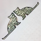 Lasercut digital art twin skulls cats 6x12 magnetic wood prints kitties by me My design. Silhouettes of twin mirrored cats with an army of many different skulls floating within them. All cut on my laser machine and sublimation printed by me in house. 1 has magnet strips on it, I'll affix some on other piece as well before sending out. ***Treasure Suite offers you many pieces of my art prints now*** ###This section is for laser cut sublimation prints of my digital art. Measurements vary by piece. ### *Welcome to my unique collection of digital art, where creativity meets craftsmanship! Each piece in this category features my original digital designs, heat pressed into vibrant sublimation prints on laser cut whiteboard material. Some are engraved then hand painted. These art pieces are not just decorations, they are collectibles that bring a touch of gothic, rock and roll, horror, pin-up, and lowbrow art into your space. *perfect for:* *man cave *castle *bungalow *abode *domicile *penthouse *flat *cabin *studio *boutique hotel *yacht *etc *These pieces make fantastic gifts for art enthusiasts and collectors alike. Who doesn't enjoy vibrant digital art of out of this world space huntresses, demon witches, cyberpunk vixen cyborgs, spooky mistresses, hearses, hotrods, and so on? ***May consider custom orders of laser cut or engraved items.***