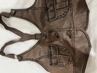 This Last Kiss poly vinyl vest in brown size L features a biker style with a solid pattern and a short length. The closure includes buttons and hook & eye fastenings, making it versatile to wear. Made from polyurethane, this lightweight vest includes pockets for added functionality. With a hipster, western, and biker theme, this piece is perfect for those with a love for motorcycle, rock, hippie, grunge, tattoo, and gothic styles.