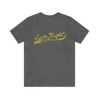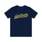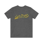 Late Night With David Letterman 1982 Vintage Men's T-Shirt Description Late Night with David Letterman was an American late-night talk show hosted by David Letterman, whose persona was that of a wise-ass little brother, that premiered on NBC on February 1, 1982. He invented, or at least personified, a generation of ironic comedy that commented on the media, even as his show was a part of it. He developed signature goofy segments like "Stupid Pet Tricks" and often found comedy in the mundane, just by being himself in unexpected situations. He hosted Late Night on NBC for 11 years, and then lost out to Jay Leno in the bitter battle to ascend to Johnny Carson's Tonight Show chair. As a result, Late Night moved to CBS, where he was expected to turn into a grown-up, but Letterman stayed goofy while also finding his more serious side. Politicians came to visit, and he became known as a great interviewer, but remained a comedian and a true king of late night TV. Details Like all our designs, this one is treated with our signature 'relic-ing' process which includes our own secret recipe of hand-painted chipping, cracking, fading, and just the right touch of yellowing to ensure that it looks the part of a true vintage imprint.** We lay these works of art down on premium Bella+Canvas 3001 Unisex Jersey Short Sleeve Tees, one of the softest, best-wearing t-shirts available today, via state of the art direct to garment (DTG) printing which allows us to create a vintage effect that simply can't be accomplished with other printing methods. In short, these shirts are everything you've dreamed of and more - it feels soft and lightweight with just the right amount of stretch making it comfortable and flattering for both men and women. 100% combed and ring-spun cotton* Fabric weight: 4.2 oz (142 g/m2) 30 single Tear-away label Shoulder-to-shoulder taping Side-seamed Retail fit Runs true to size Sizing Not sure what size is your best fit? We recommend taking one of your current t-shirts, laying it flat and measuring it. The measurements in the chart below are taken with the shirt laying on a flat surface. To get the length, measure from the high shoulder point down to the bottom of the shirt. To get the width, measure approximately 1-inch below the armhole, across the chest, from seam to seam. While our tees are all made using premium, pre-shrunk, ring-spun cotton, there can be some shrinkage depending on your personal wash and dry cycles. With that said, if you're on the fence, we always suggest going up a size. S M L XL 2XL 3XL 4XL Width 17.99 20.00 22.01 24.02 25.98 27.99 30.00 Length 27.99 29.02 30.00 31.02 32.01 32.99 33.98 Sleeve length 8.90 9.17 9.45 9.72 10.00 10.39 10.79 All sizes are provided in inches! *Heather colors are 52% combed and ring-spun cotton/48% polyester. Athletic and Black Heather is 90% combed and ring-spun cotton/10% polyester. Ash color is 99% Airlume combed and ring-spun cotton and 1% poly. **Due to the nature of the printing process and different sizes of shirts offered, imprint position and scale may vary slightly from the product images, but we do our best to be as accurate as possible. Late Night With David Letterman 1982 Vintage Men's T-Shirt Description Late Night with David Letterman was an American late-night talk show hosted by David Letterman, whose persona was that of a wise-ass little brother, that premiered on NBC on February 1, 1982. He invented, or at least personified, a generation of ironic comedy that commented on the media, even as his show was a part of it. He developed signature goofy segments like "Stupid Pet Tricks" and often found comedy in the mundane, just by being himself in unexpected situations. He hosted Late Night on NBC for 11 years, and then lost out to Jay Leno in the bitter battle to ascend to Johnny Carson's Tonight Show chair. As a result, Late Night moved to CBS, where he was expected to turn into a grown-up, but Letterman stayed goofy while also finding his more serious side. Politicians came to visit, and he became known as a great interviewer, but remained a comedian and a true king of late night TV. Details Like all our designs, this one is treated with our signature 'relic-ing' process which includes our own secret recipe of hand-painted chipping, cracking, fading, and just the right touch of yellowing to ensure that it looks the part of a true vintage imprint.** We lay these works of art down on premium Bella+Canvas 3001 Unisex Jersey Short Sleeve Tees, one of the softest, best-wearing t-shirts available today, via state of the art direct to garment (DTG) printing which allows us to create a vintage effect that simply can't be accomplished with other printing methods. In short, these shirts are everything you've dreamed of and more - it feels soft and lightweight with just the right amount of stretch making it comfortable and flattering for both men and women. 100% combed and ring-spun cotton* Fabric weight: 4.2 oz (142 g/m2) 30 single Tear-away label Shoulder-to-shoulder taping Side-seamed Retail fit Runs true to size Sizing Not sure what size is your best fit? We recommend taking one of your current t-shirts, laying it flat and measuring it. The measurements in the chart below are taken with the shirt laying on a flat surface. To get the length, measure from the high shoulder point down to the bottom of the shirt. To get the width, measure approximately 1-inch below the armhole, across the chest, from seam to seam. While our tees are all made using premium, pre-shrunk, ring-spun cotton, there can be some shrinkage depending on your personal wash and dry cycles. With that said, if you're on the fence, we always suggest going up a size. S M L XL 2XL 3XL 4XL Width 17.99 20.00 22.01 24.02 25.98 27.99 30.00 Length 27.99 29.02 30.00 31.02 32.01 32.99 33.98 Sleeve length 8.90 9.17 9.45 9.72 10.00 10.39 10.79 All sizes are provided in inches! *Heather colors are 52% combed and ring-spun cotton/48% polyester. Athletic and Black Heather is 90