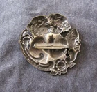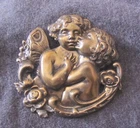 Late Victorian pressed brass brooch about 2" each way, with good detail and an enigmatic subject. It's a charming and intimate scene; to me, it looks like one of the participants has a butterfly-like wing (one visible), and the other one gets along like the rest of us. Old if not original pin with 'C' clasp; unsigned. Old surface; I'd leave it like this. Excellent condition. *Feel free to ignore any Item Specific that seems especially silly, irrelevant, inappropriate, or redundant. eBay frequently adds things without consulting the seller, and which I don’t always catch. Expecting help from eBay Categories? Good luck. I always ship the business day after I receive payment, and pack multiple purchases together to save on shipping. Buyer pays actual USPS postage; there is no handling fee, and I pay for all packing materials. By clicking on “Shipping and Payments,” you can check the postage before you bid . Printed material containing advertising – even old, obsolete advertising – cannot be sent Media Mail. *I don’t know why eBay says I don’t accept returns; I have tried to change that on the listing: an item may be returned if it is substantially different from how I have described it. I will pay return postage. Because of the new rates, and because it now includes insurance, I am going to use Ground Advantage for everything. Sometimes it’s a little slower, but the bottom line is it’s cheaper , sometimes considerably. Postage is based in part on distance; I am shipping from Arizona. Thank you for looking, and for wading through the fine print. I will leave Feedback to let you know your item is on the way.